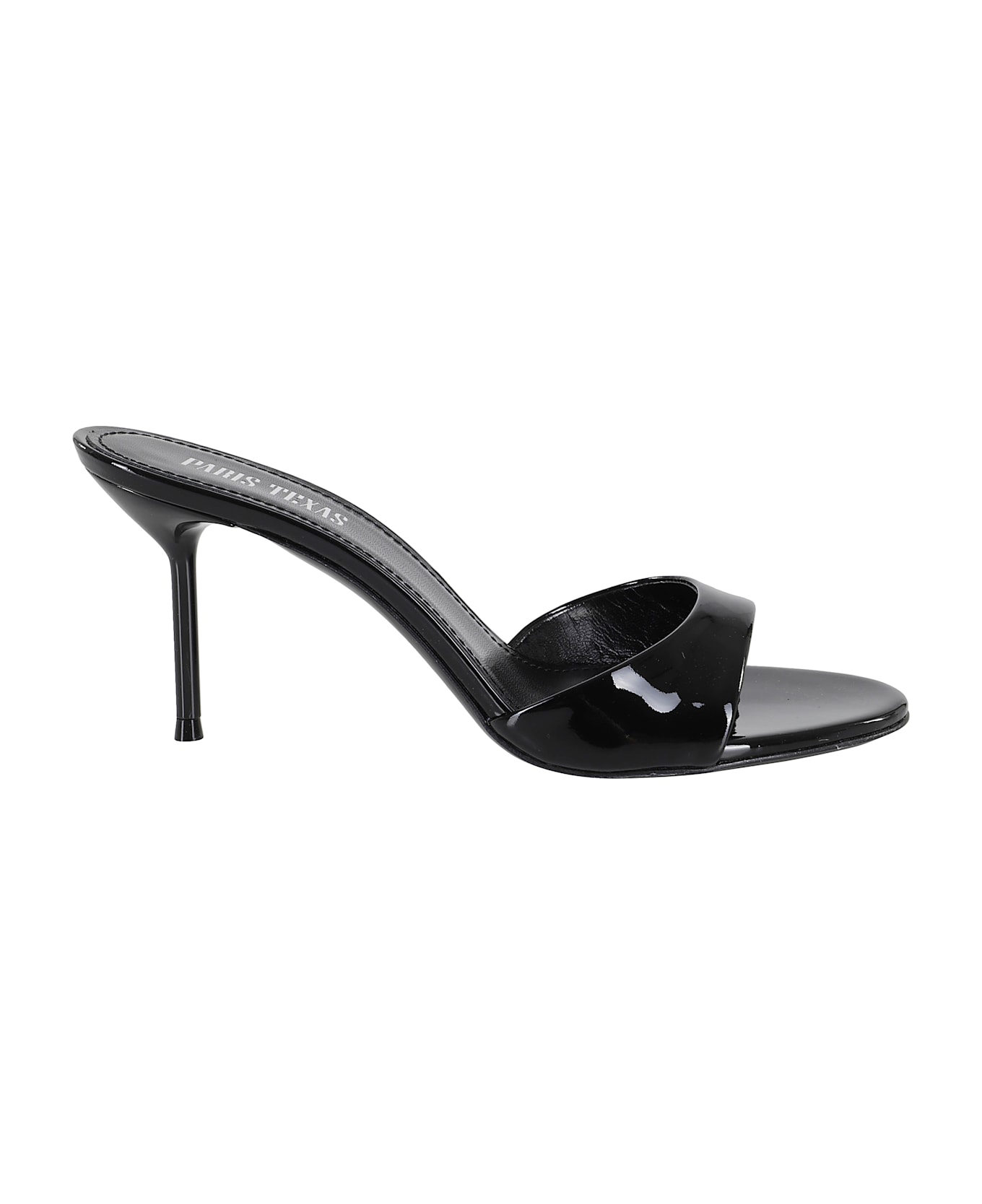 Lidia Mule 70 sandal - Paris Texas - black color - patent leather upper - leather sole - round toe with single band - 7cm heel