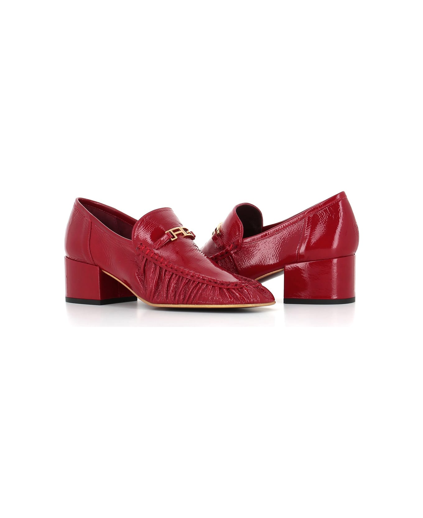 Red soft naplack leather Loafer from Avril Gau, featuring by a squared toe and decorated on the front with the brand's initials in gold. Leather sole. Lined unlined. Heel: 4,5 cm