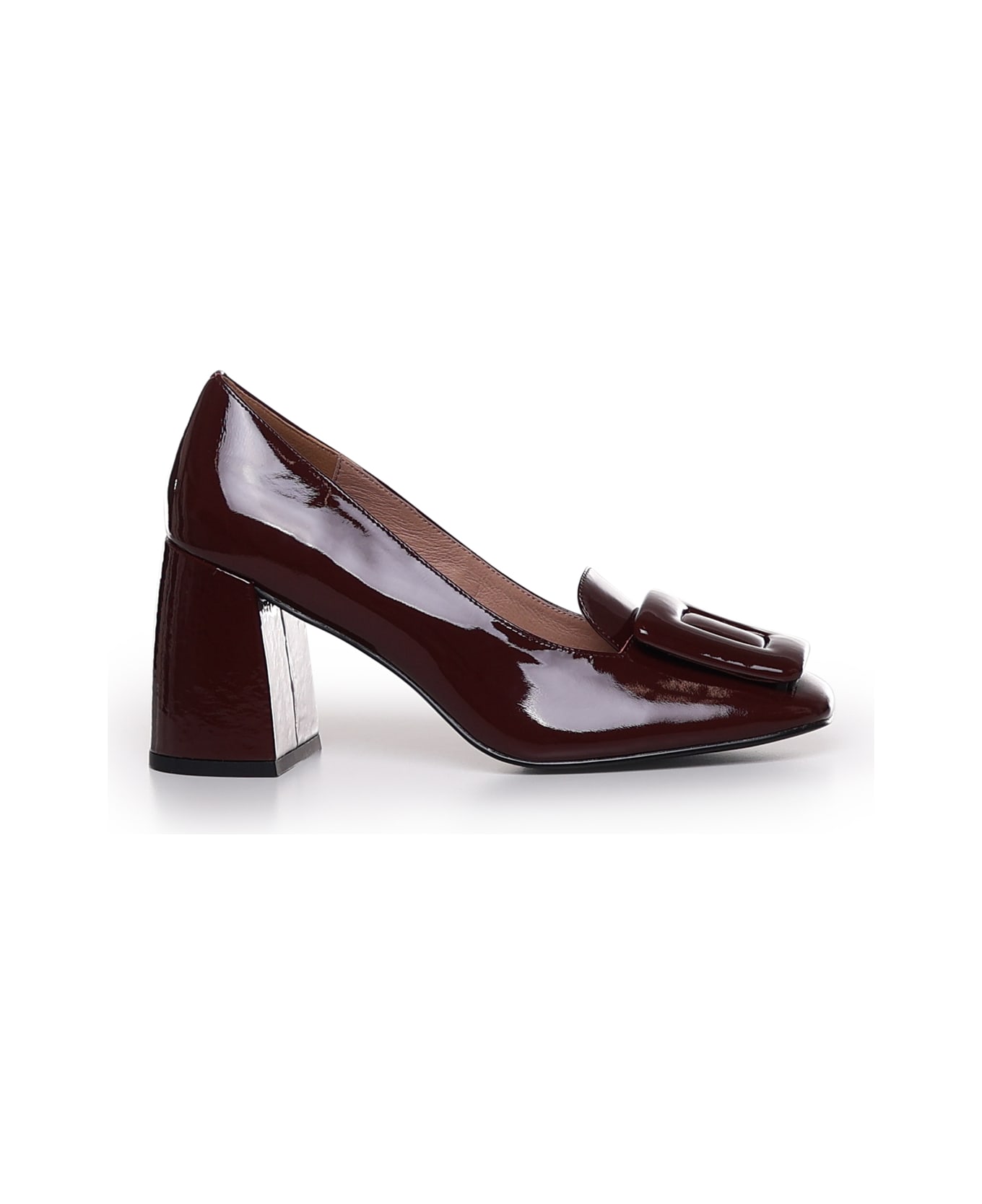Bordeaux Marla Pumps from Bibi Lou -Patent leather pumps -Square toe with lined decoration -8 cm wide heel -Made in Spain -Colour: Bordeaux -100% Patent leather