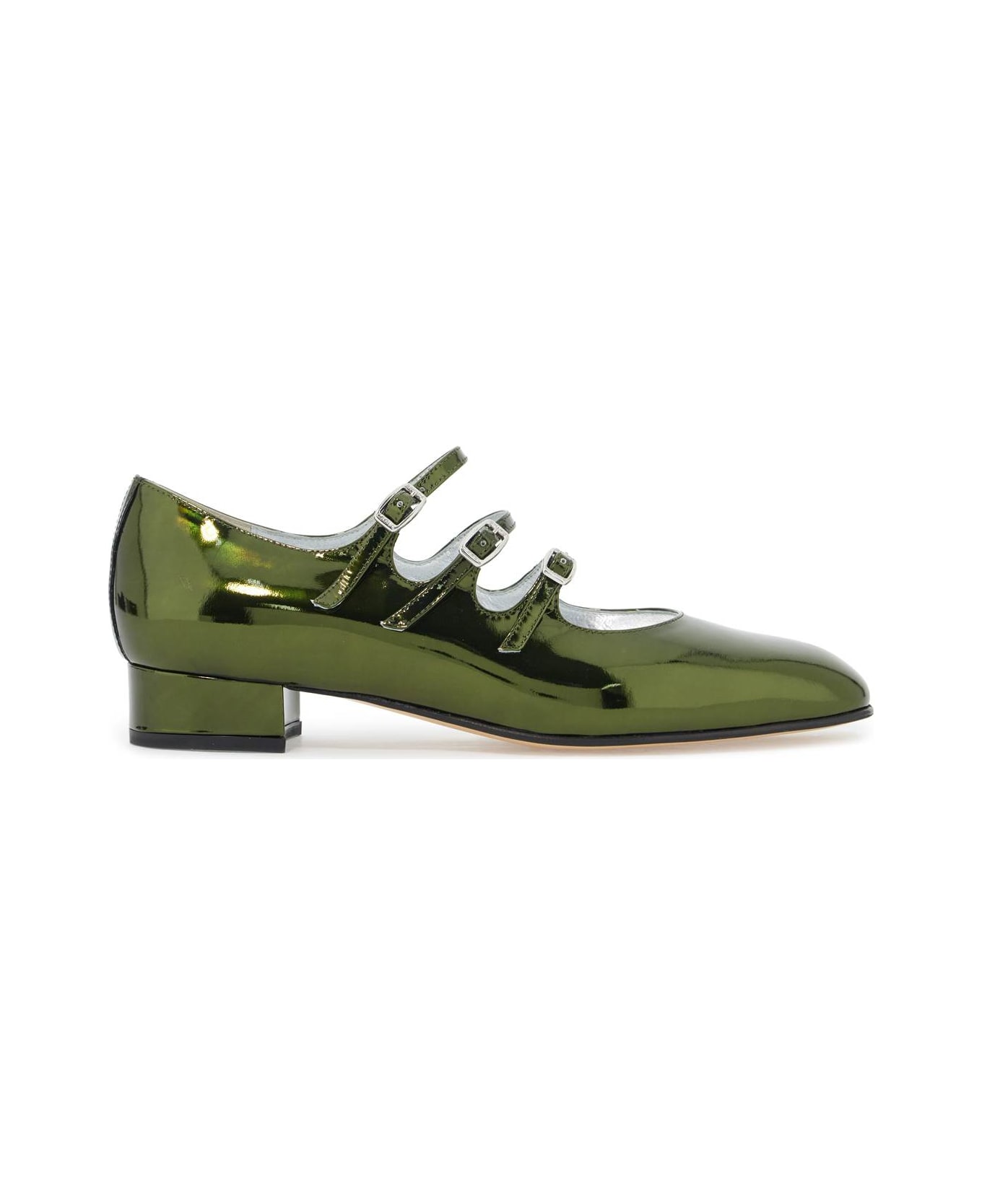 The Mary Jane shoes by Carel are made of metallic leather with adjustable straps. They feature a leather insole and a leather sole.