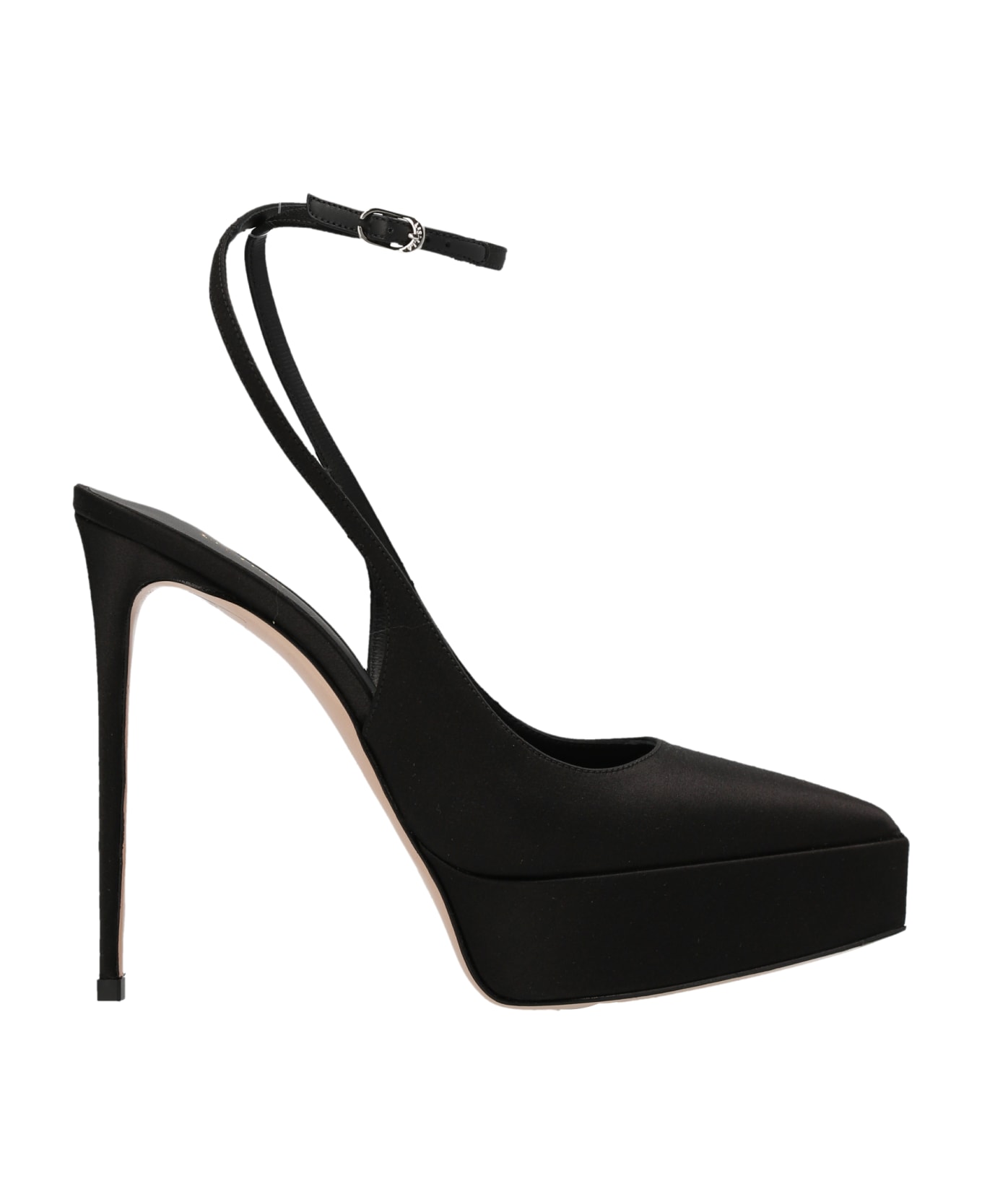 'Cashmere Uma' satin, pointed toe pumps with ankle straps and a stiletto heels.