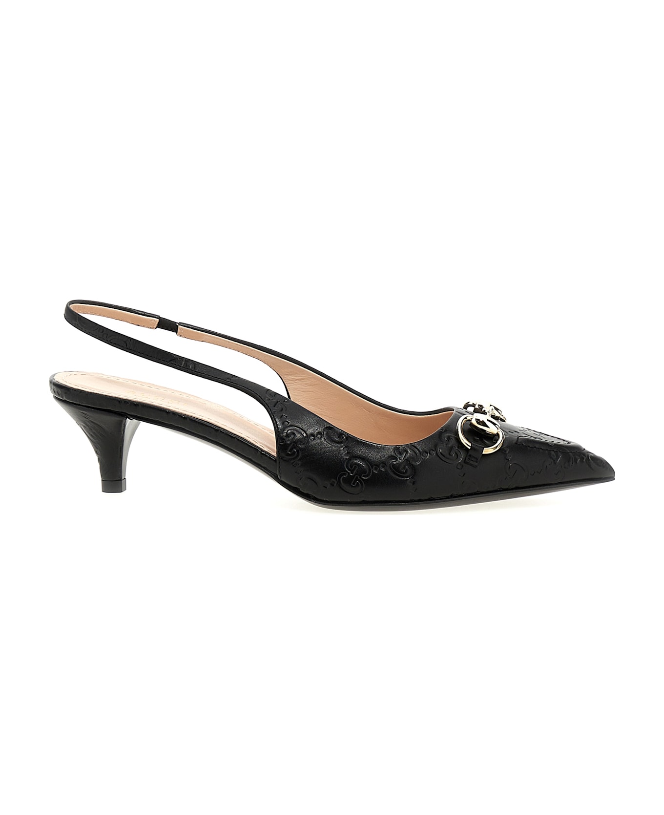 All-over GG leather slingback shoes with front metal 'Morsetto' appliqué, pointed toe, elastic strap, heel. Composition: 100% calfskin leather (Bos Taurus)