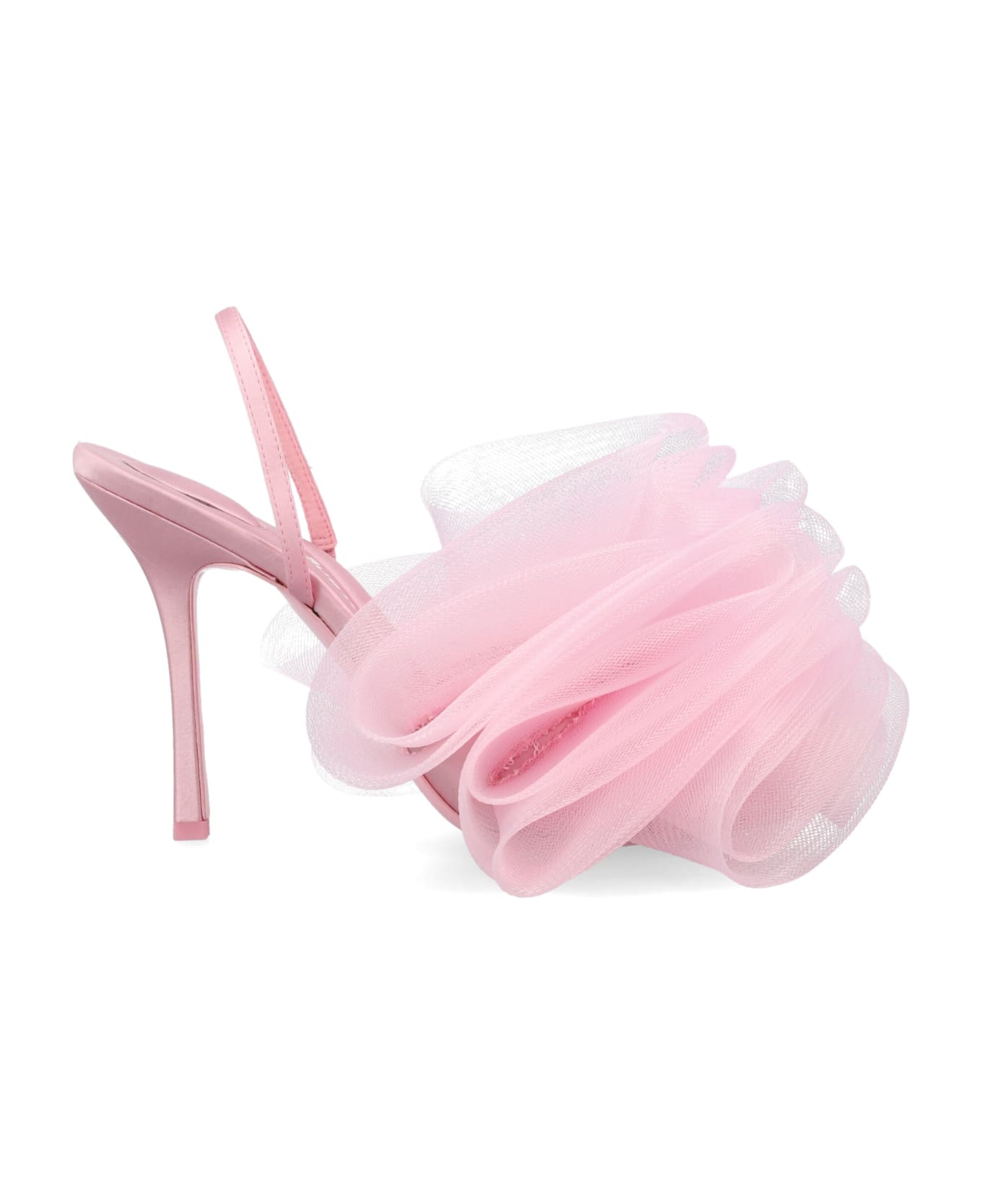 Pom 105 Slingback By Alexander Wang. Featuring: Open Toe Loofah Inspired Top Straps In Tulle Mesh And Satin Signature Comfort Footbed High Heel Heel: 10,5 Cm
