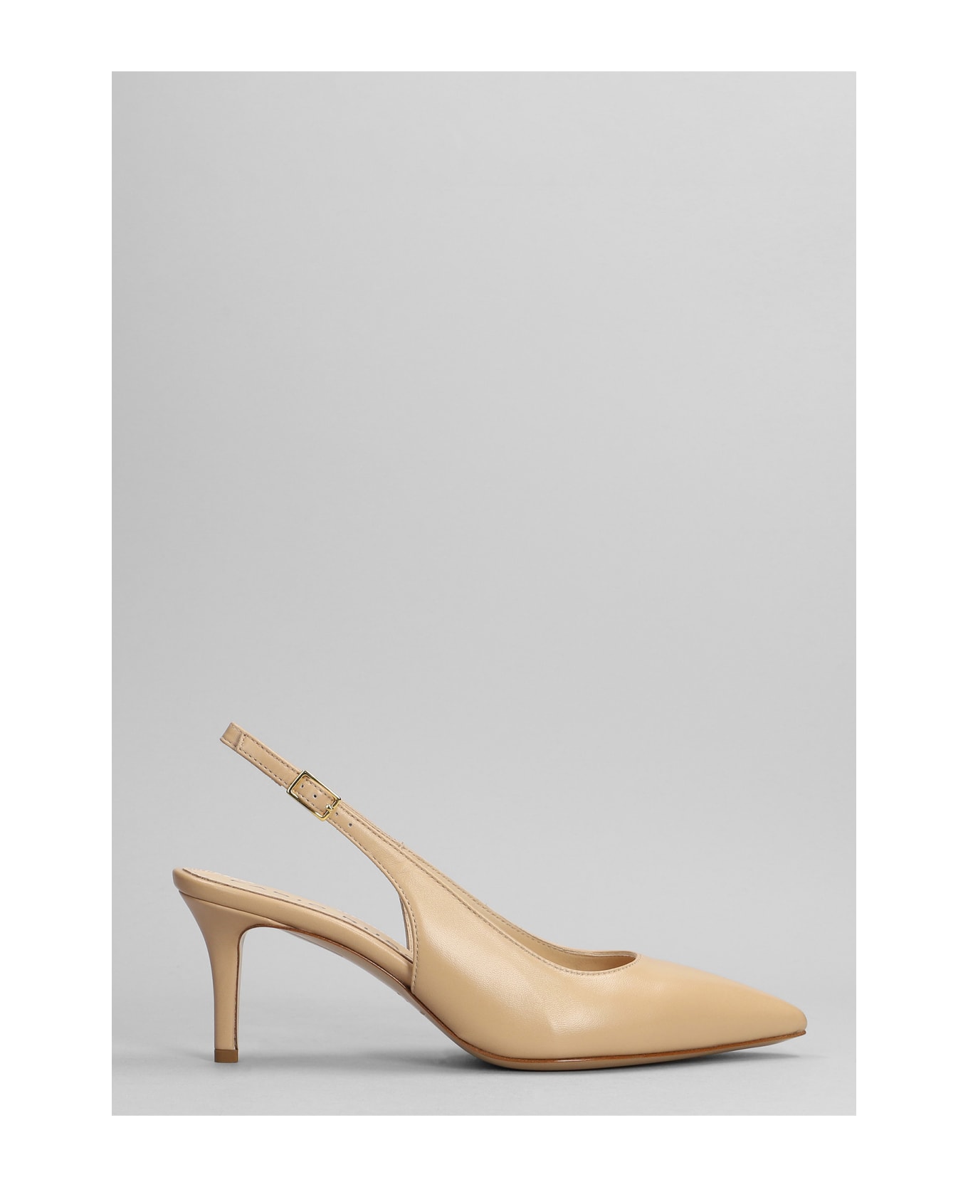 Pumps in beige leather, sling back, pointed toe, heel 75mm, 100% leather, leather sole, Made in Italy