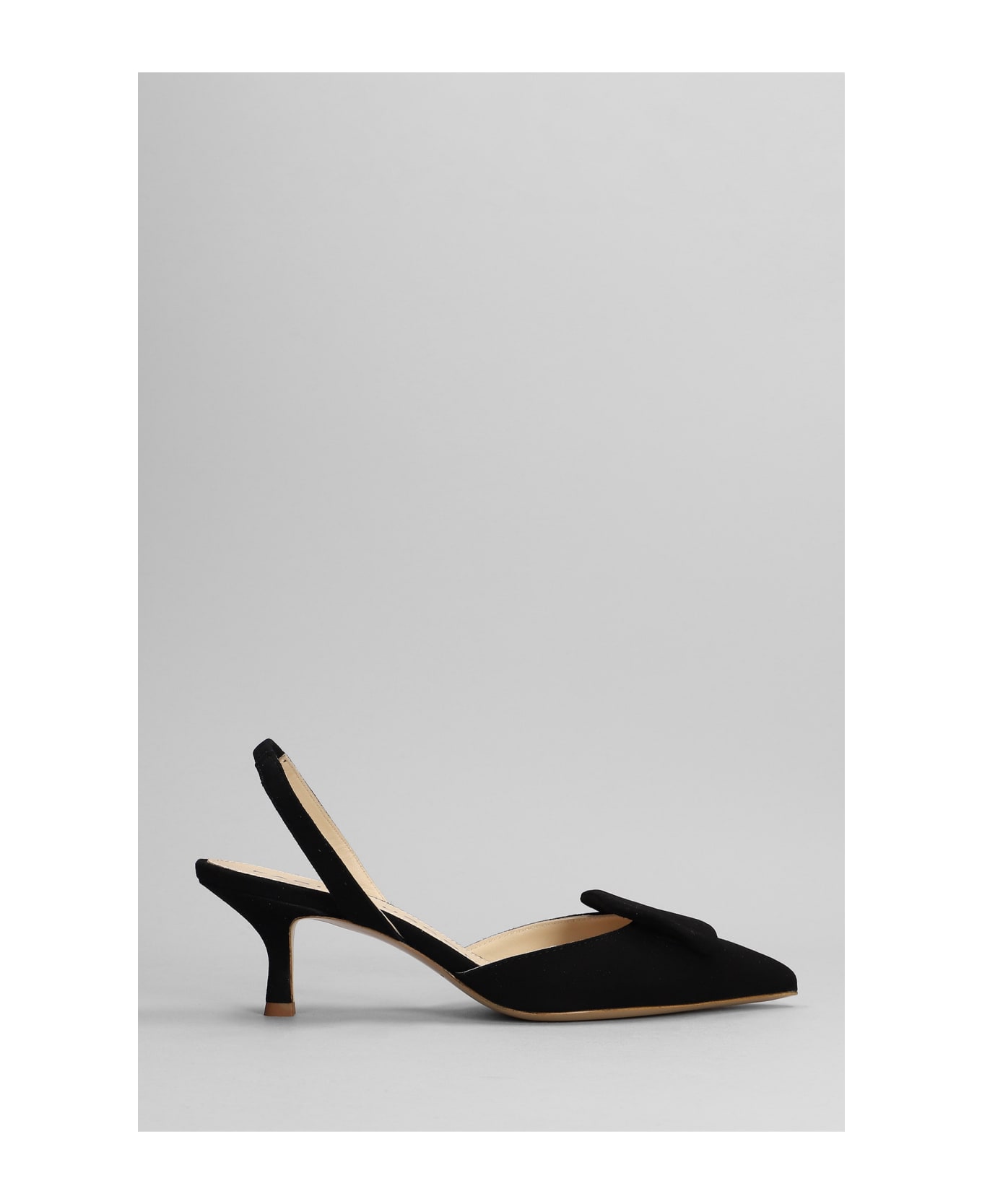 Pumps in black suede, pointed toe, heel strap, heel 65 mm, 100% suede, leather sole, Made in Italy