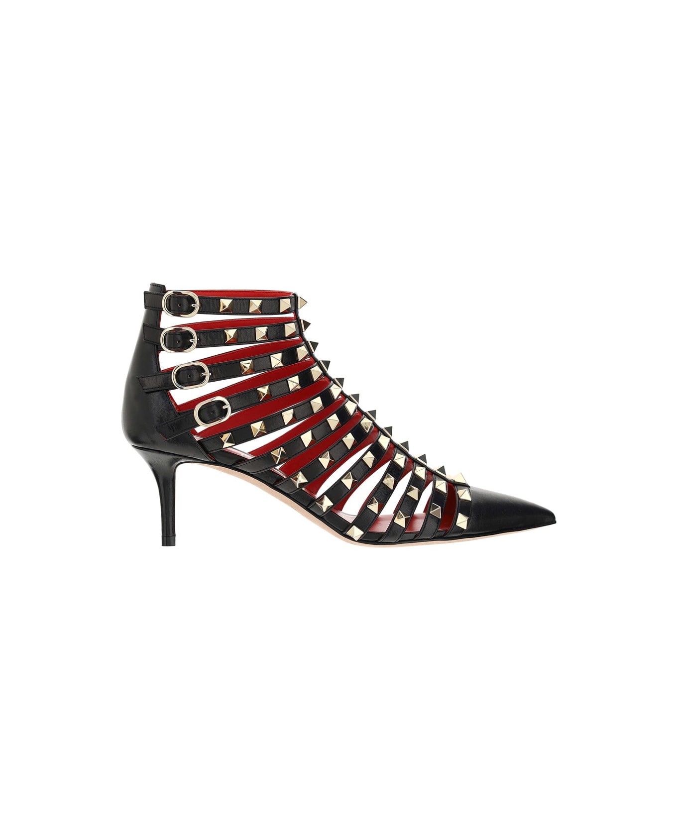 Pumps Boots by Valentino Garavani, pointed toe, details with rockstuds on straps, four adjustable ankle strap closure with buckle. Composition: 100% Calf Leather Bos Taurus, 100% Calf Leather Bos Taurus
