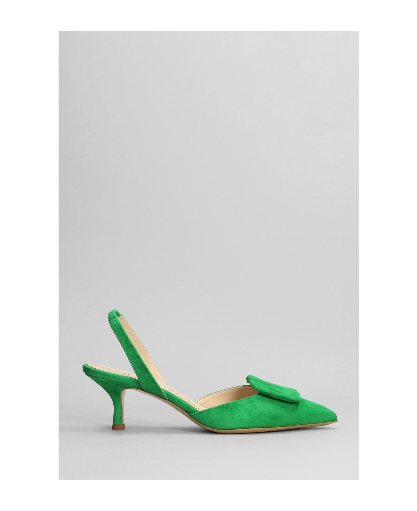 Pumps in green suede, pointed toe, heel strap, heel 65 mm, 100% suede, leather sole, Made in Italy