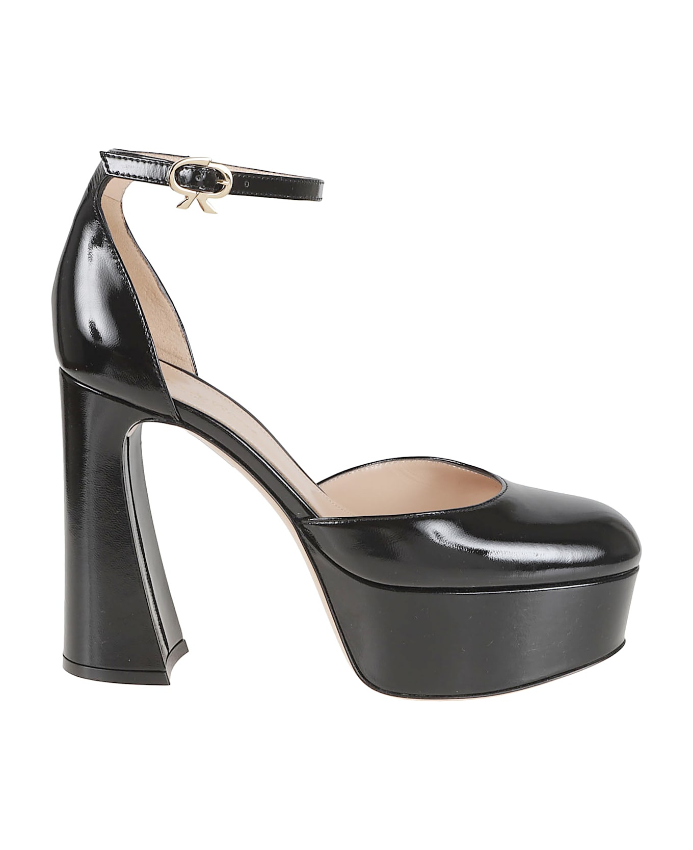 Holly d`Orsay leather shoe by GIANVITO ROSSI. Rounded toe; ankle strap with a round buckle.