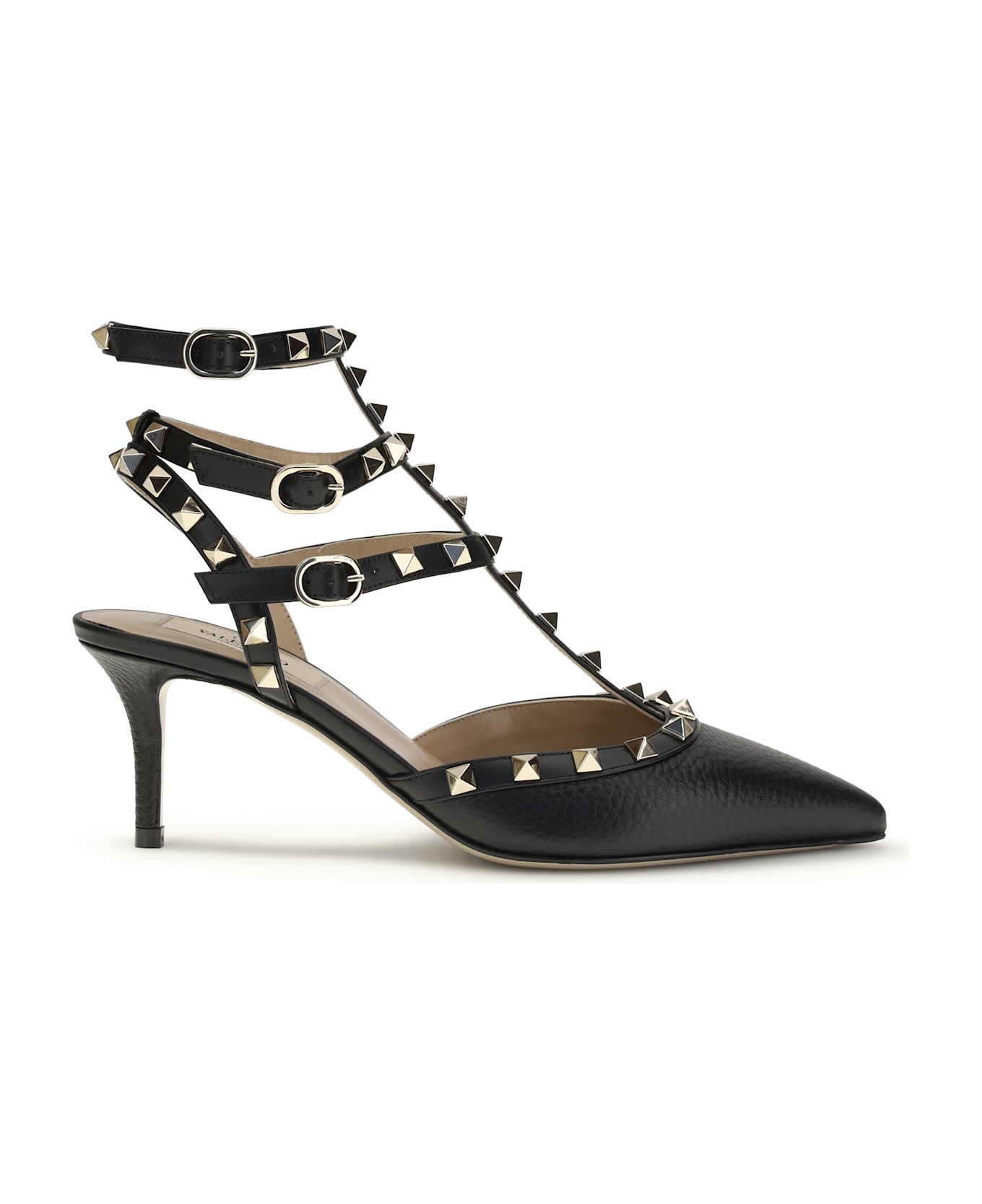 The leather rockstud pumps by valentino express bold and sophisticated elegance. featuring an elongated geometric toe, they feature an ankle strap with a triple side buckle for a secure and feminine fit. the leather stiletto heel slims the silhouette, while the iconic all-over applied studs give the model a distinctive and gritty character. the design is completed by the logoed insole and the craftsmanship typical of the maison. Composition: 100% % Calf Leather Bos Taurus