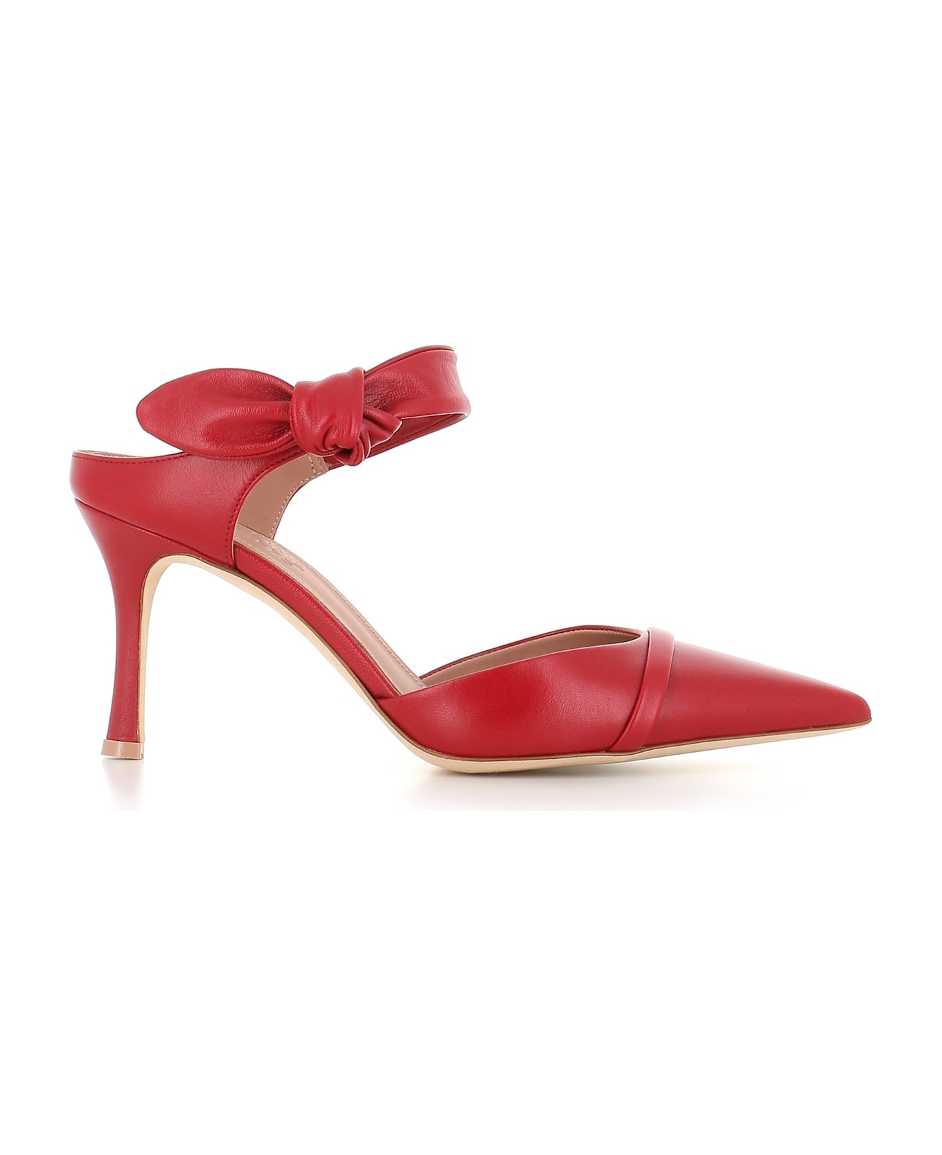 Carmine-red leather women's sabot by Malone Souliers, featuring a pointed toe and a matching soft knot. Leather sole. Lined interior. Padded insole. Heel: 8 cm Composition: Leather