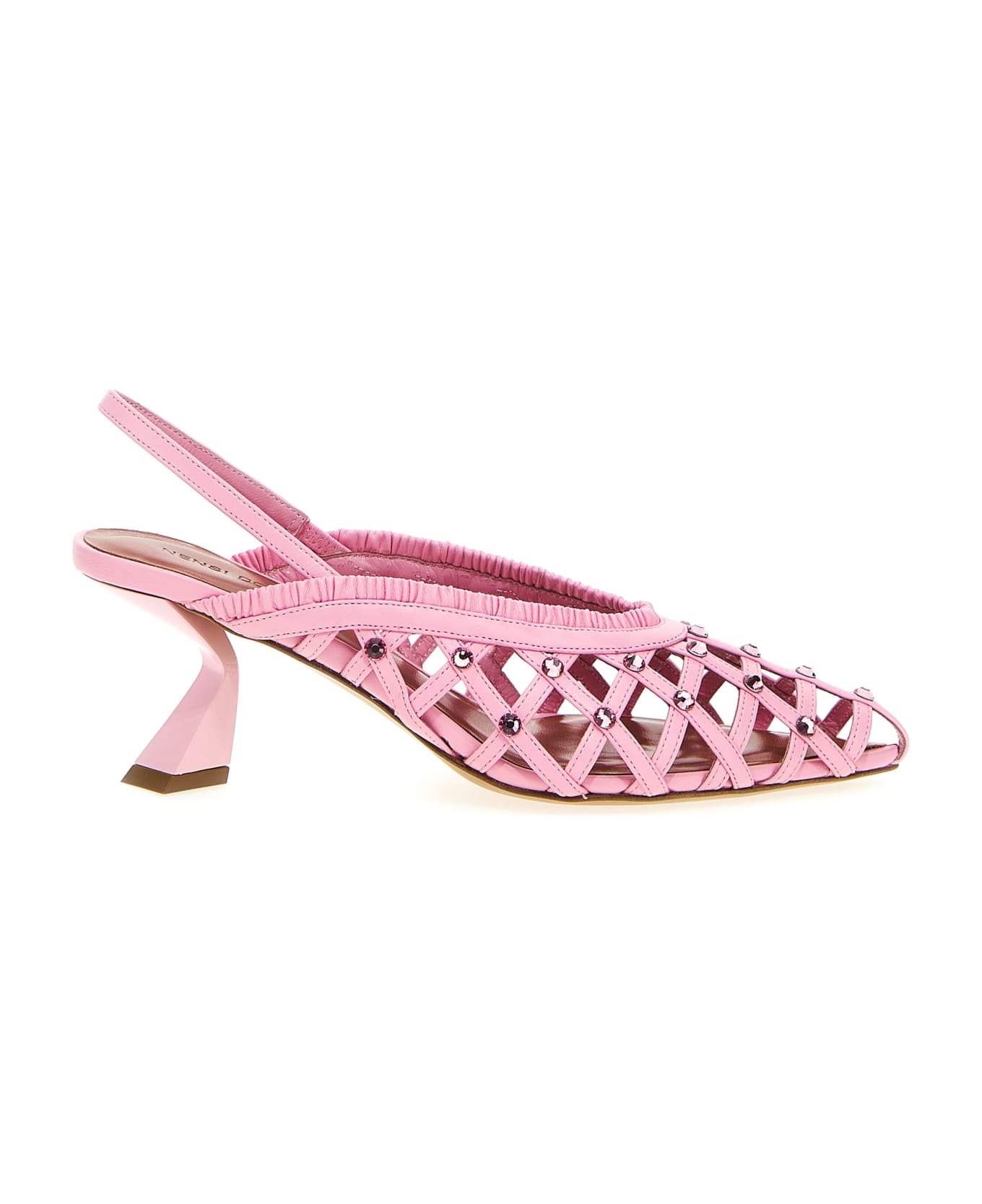 Nappa slingbacks with sequin appliqués and a sculpted heel.