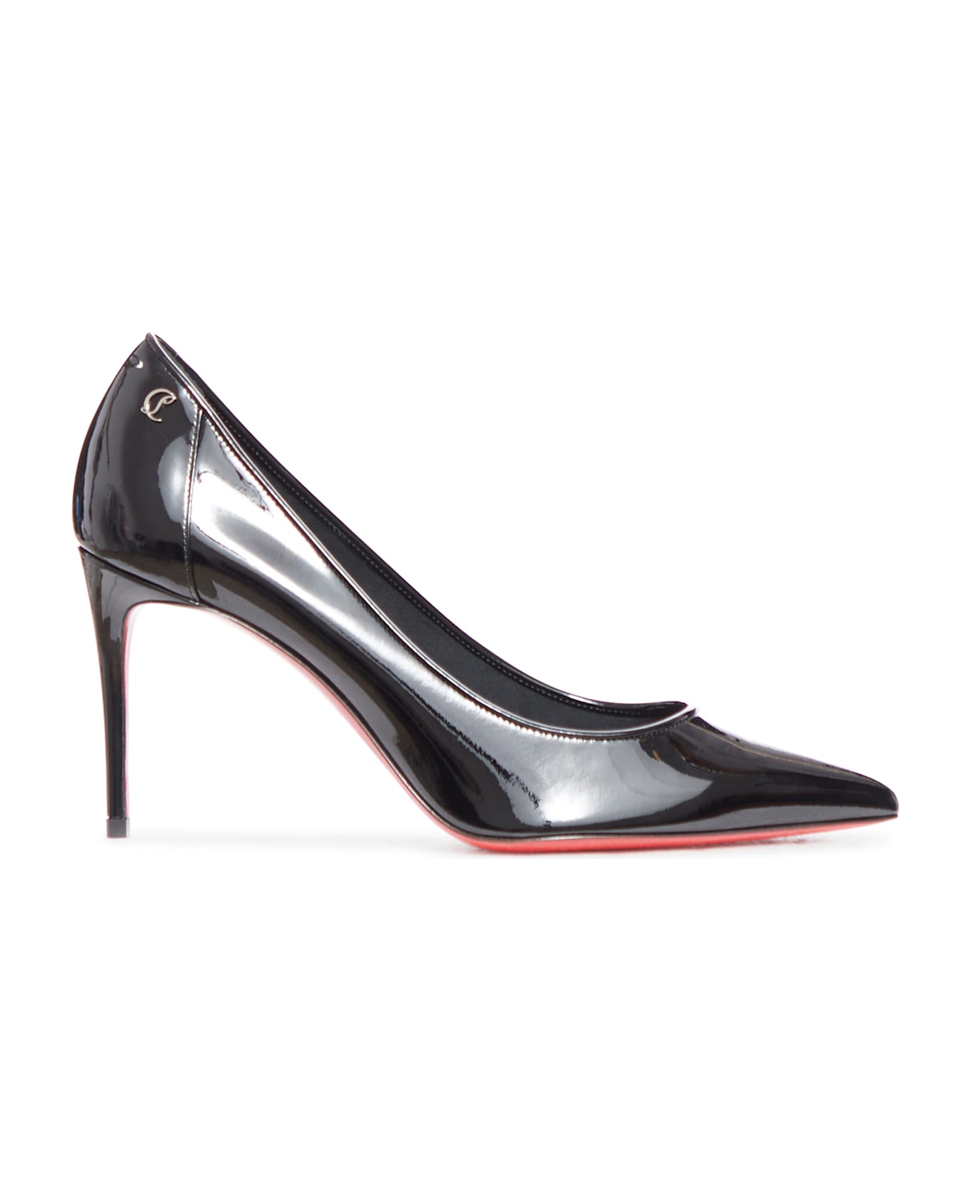 -85mm heel -Black patent calfskin -Maison Christian Louboutin metal logo -Black patent
