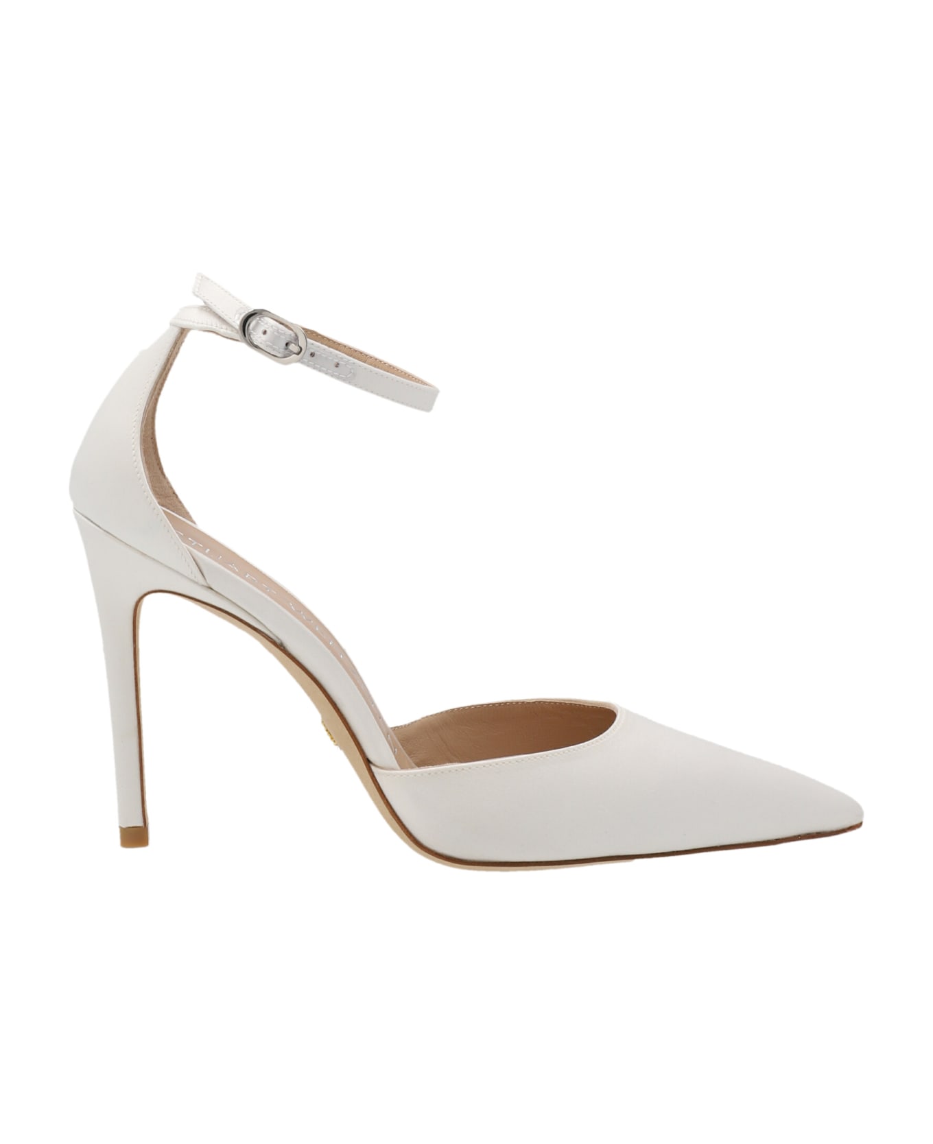 'Stuart' satin pumps with pointed toe and ankle strap.
