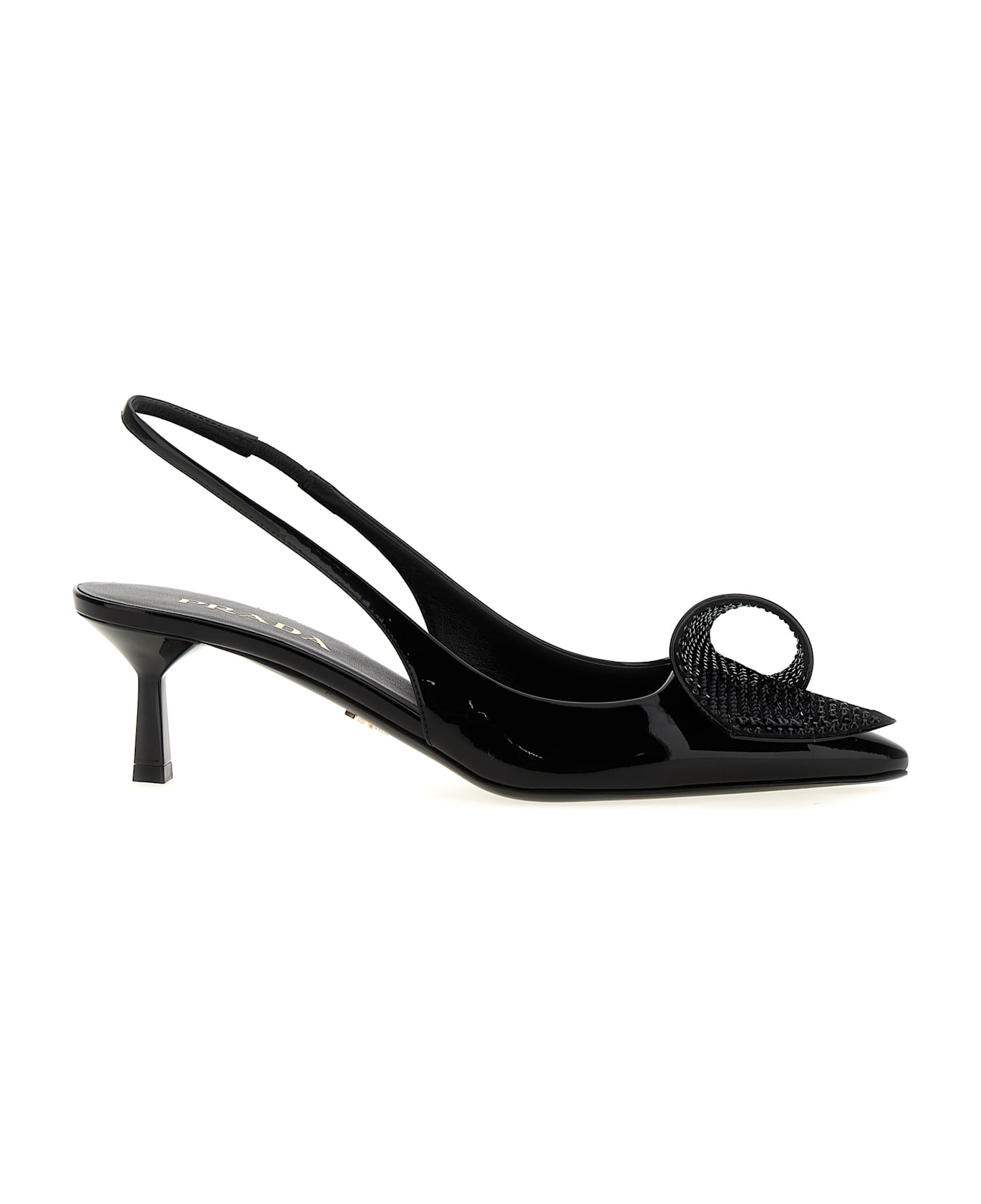 'Torchon' patent leather slingback, patent leather and satin application with crystals, leather sole. Composition:
