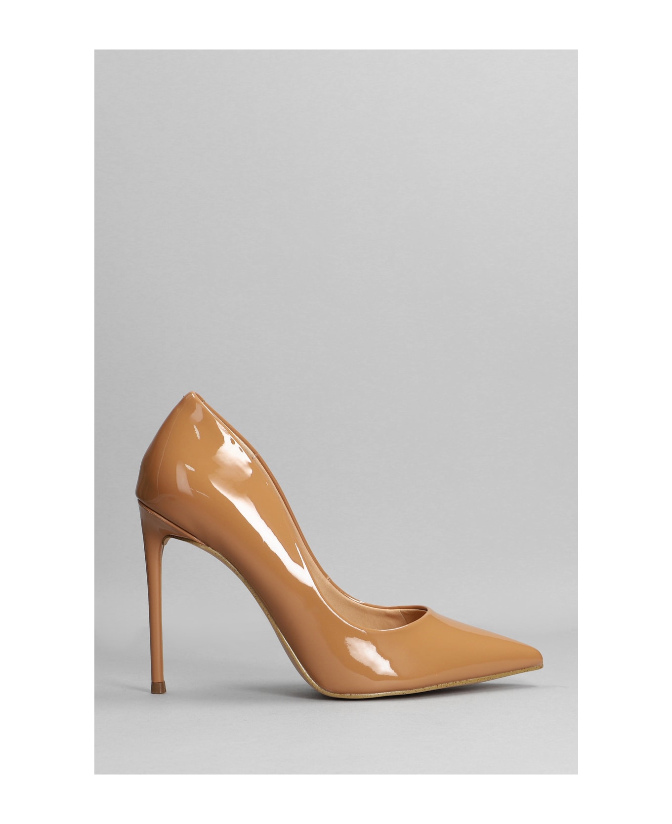 Vala Pumps in Camel patent leather, pointed toe, leather sole, heel 105mm, patent leather, Made in China