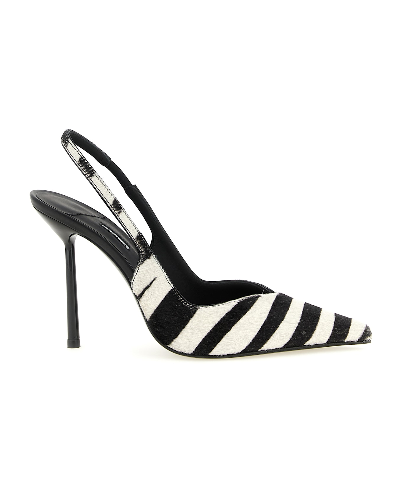 'Vivienne' calfskin calf leather slingbacks with zebra print, pointed toe with deep V-neck on the instep, elastic strap, stiletto heel, leather sole.