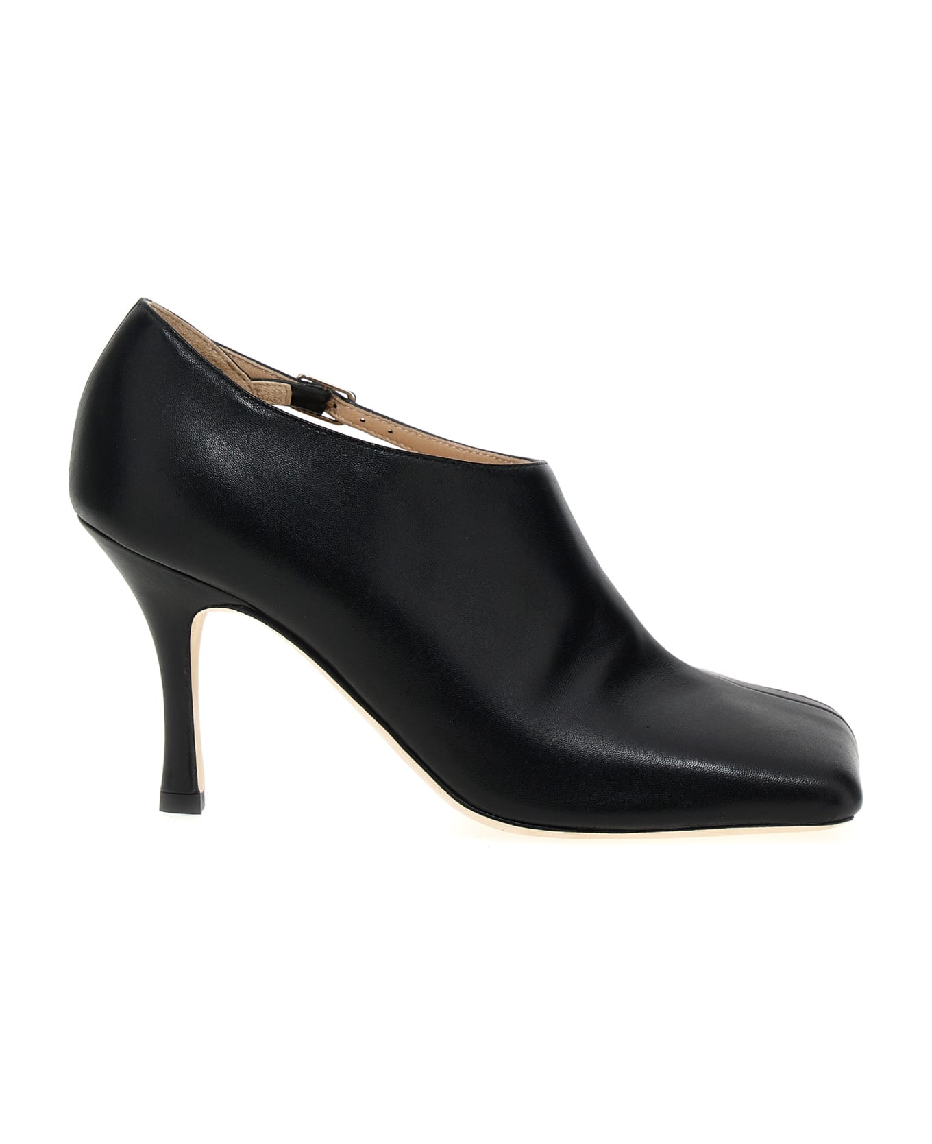 Wilma Chubby leather pumps with ankle straps, and heels. Artistic asymmetric construction of the two shoes.