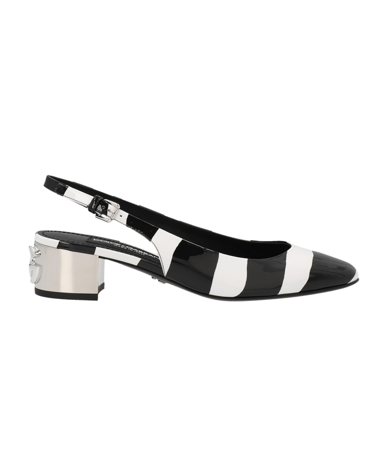 Zebra' glossy leather slingbacks with a squared toe, low heel and heavy heel with metal logo appliqué. Composition: 100% calfskin leather