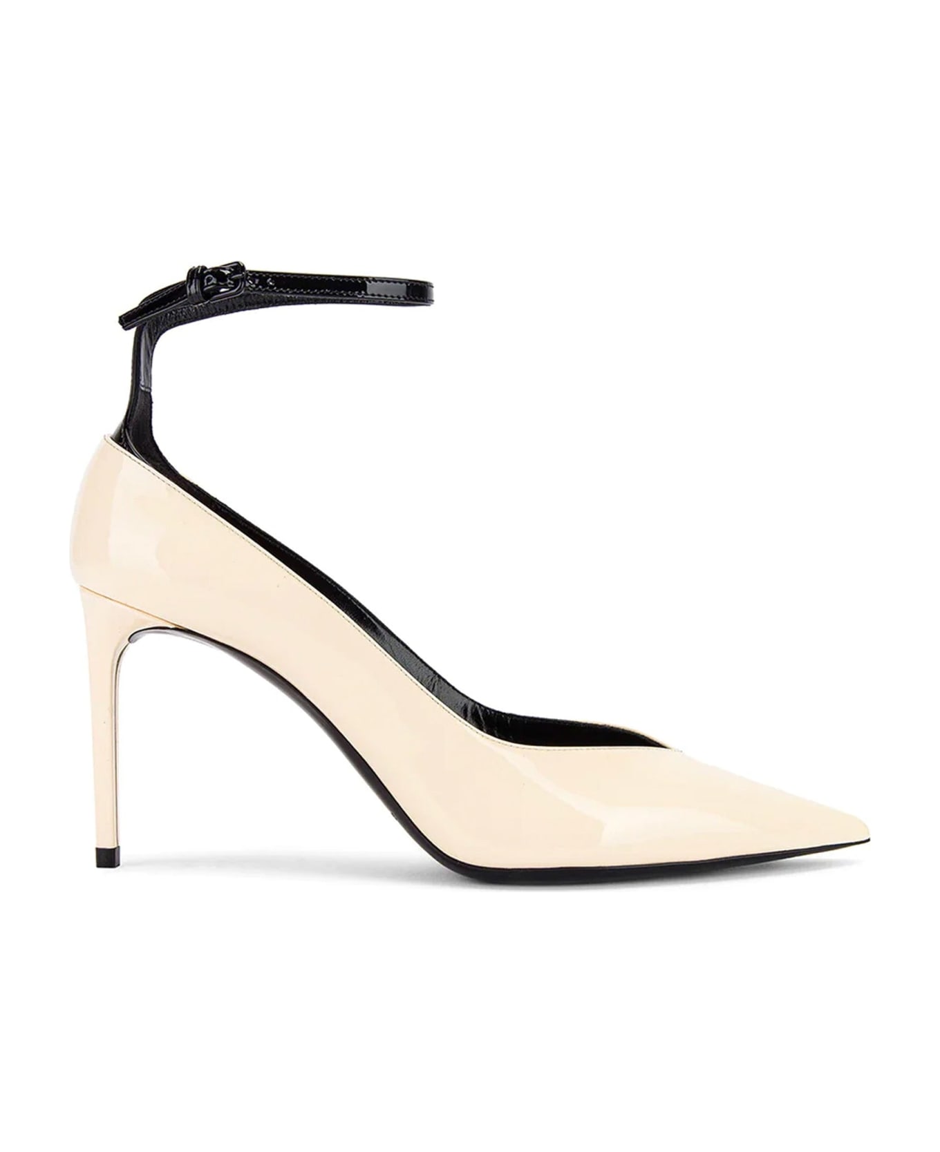 - Composition: 100% calf leather - Leather lining, insole, sole - Ankle side buckle fastening - Pointed toe - Branded insole - Heel 8,5 cm / 3,3 in