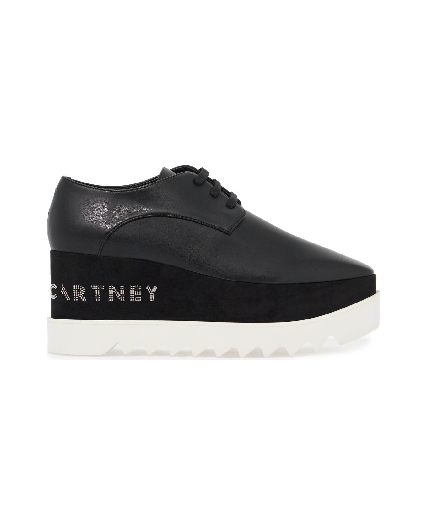 Stella McCartney alter nappa lace-ups with faux suede-covered sustainable wood wedge and micro studded logo. Gimped rubber sole. Faux leather lining. Composition: 67% PU, 33% PL