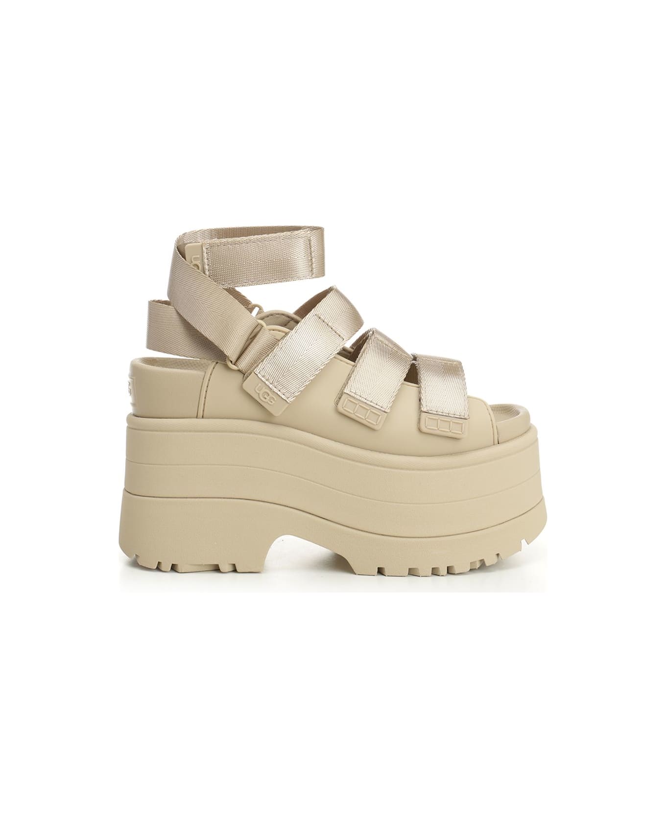 "Goldenrise" sandals from Ugg with 8 cm rubber platform sole and Velcro straps.