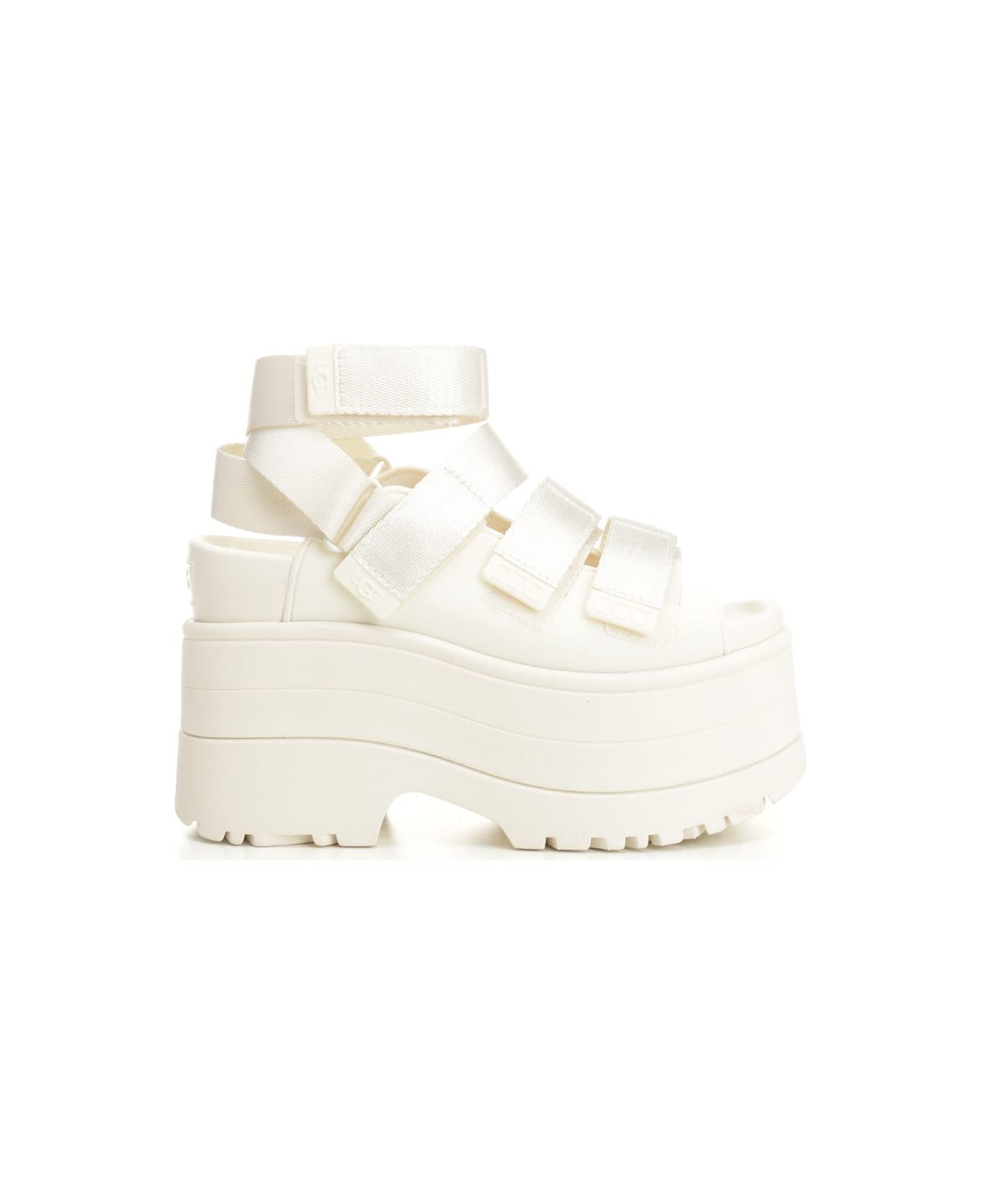 "Goldenrise" sandals from Ugg with 8 cm rubber platform sole and Velcro straps.