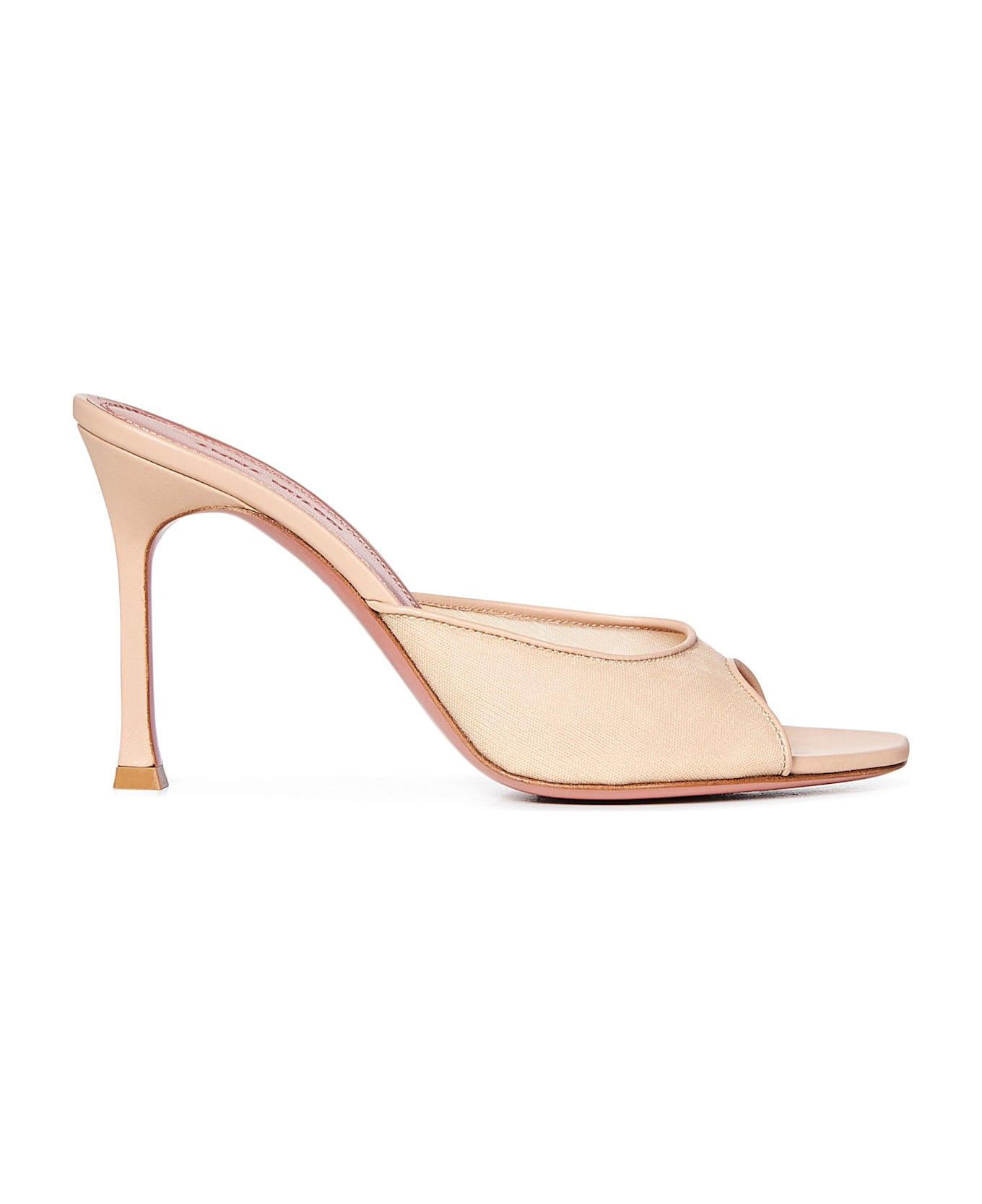 Composition: Slip-on Oblique Almond Toe; Open Heel Shaped Mesh Strap With Leather Trim Leather Covered Thin Heel Leather Insole And Lining Leather Sole With Rubber Insert Beige Color , 100% Mesh Made In Italy