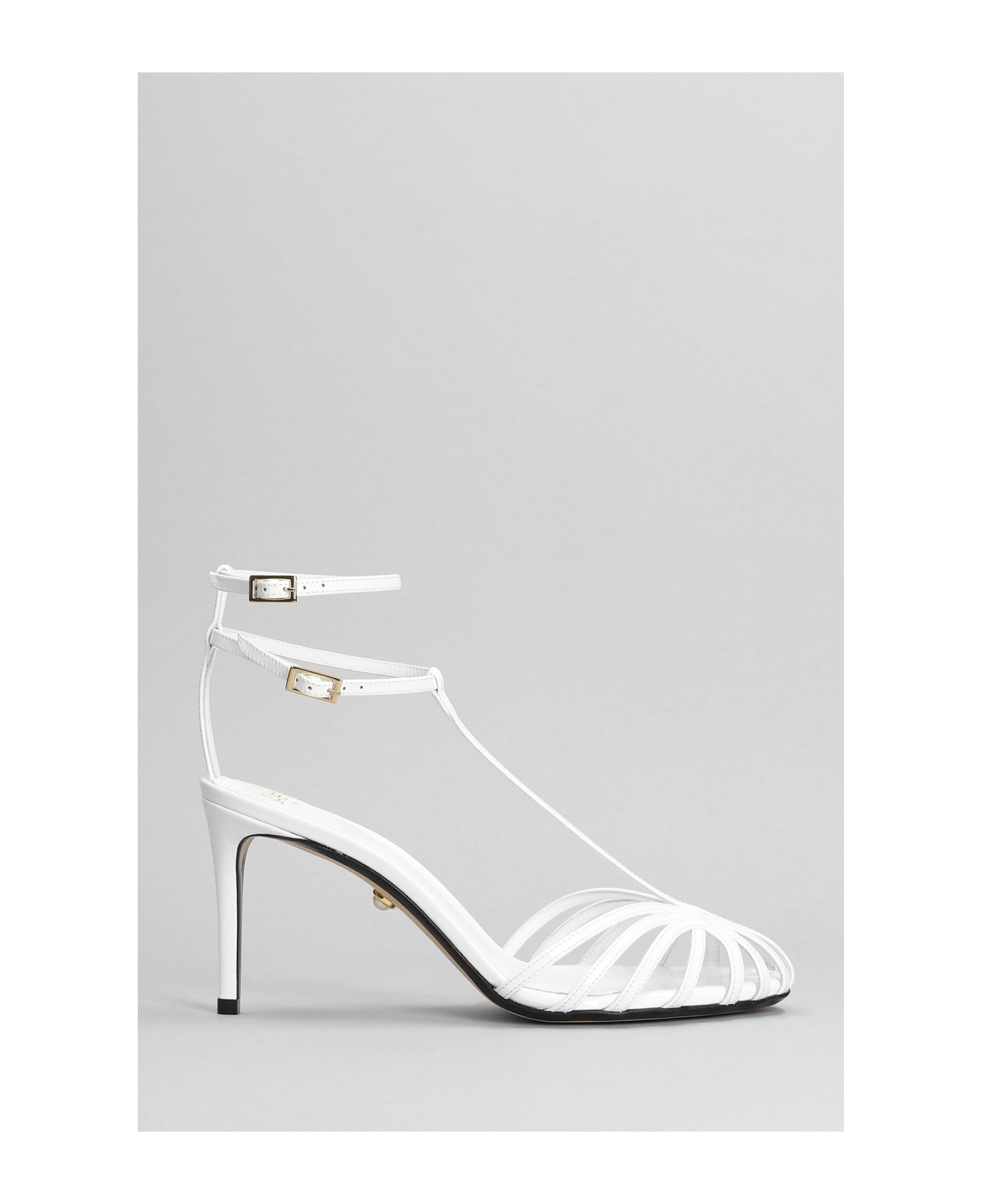 Anna 80 Sandals in white patent leather, two ankle strap, multiple thin straps, patent leather, leather sole, heel 95 mm, Made in Italy
