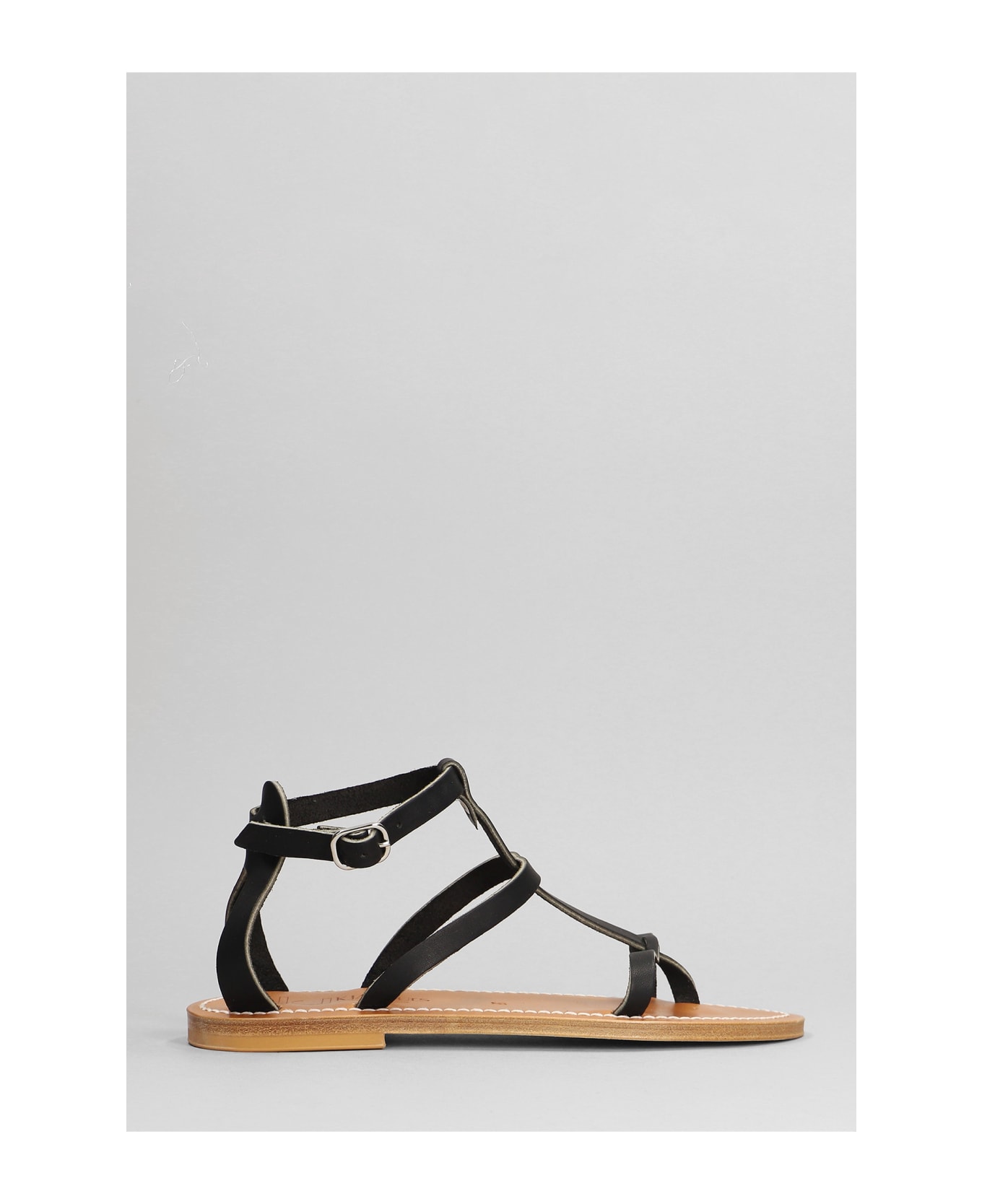 Antioche Flats in black leather, multiple thin straps, ankle strap, leather sole, open toe, 100% leather, Made in France