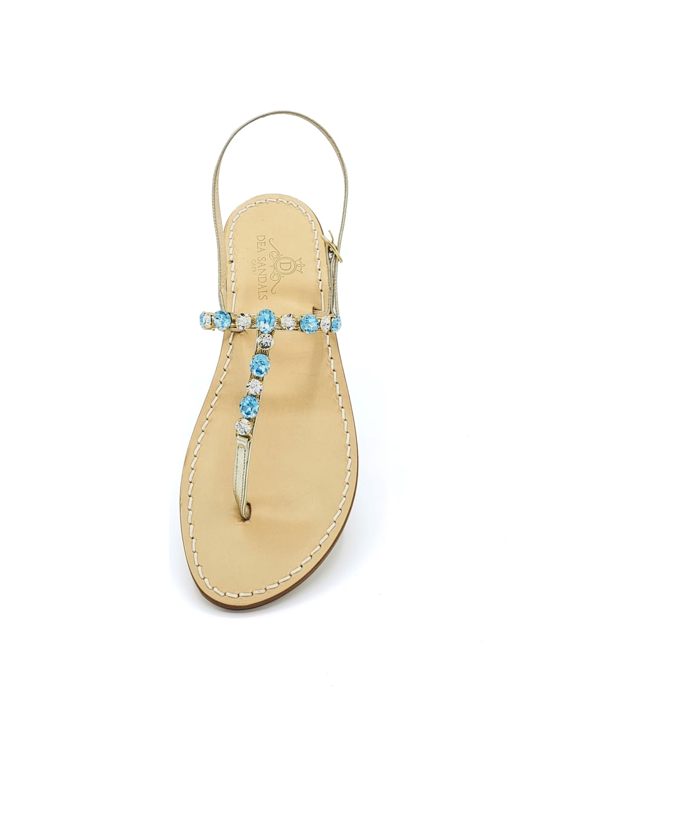 Born and made entirely in Italy, Dea Sandals offers Capri and Jeweled Sandals adorned with custom Swarovski Crystals and semi-precious stones including coral, turquoise, pearls, and more. Considered small masterpieces by the contemporary label, the gleaming and stunning jeweled sandals are created entirely by hand.