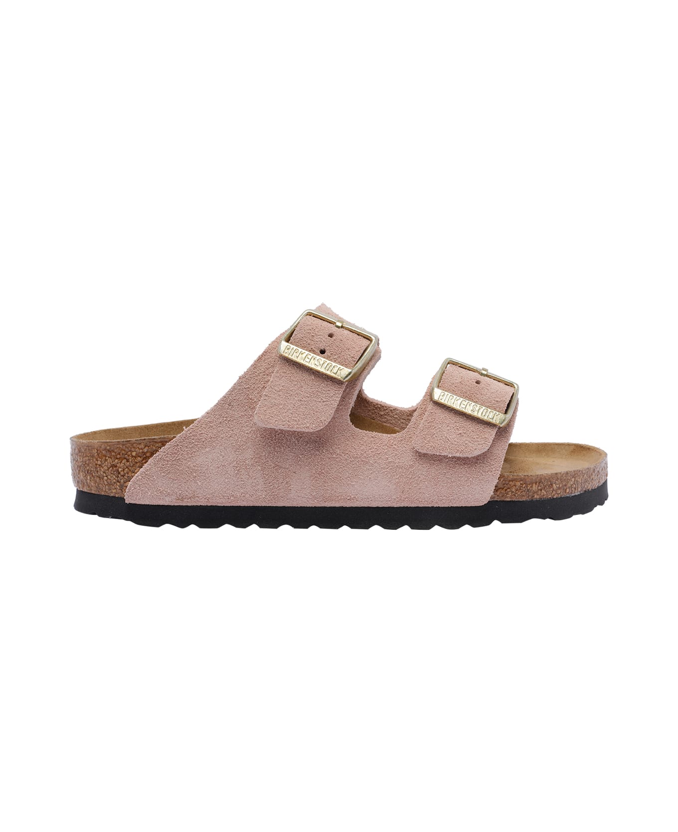 Birkenstock rose Arizona sandals, round toe, suede upper, lateral buckles