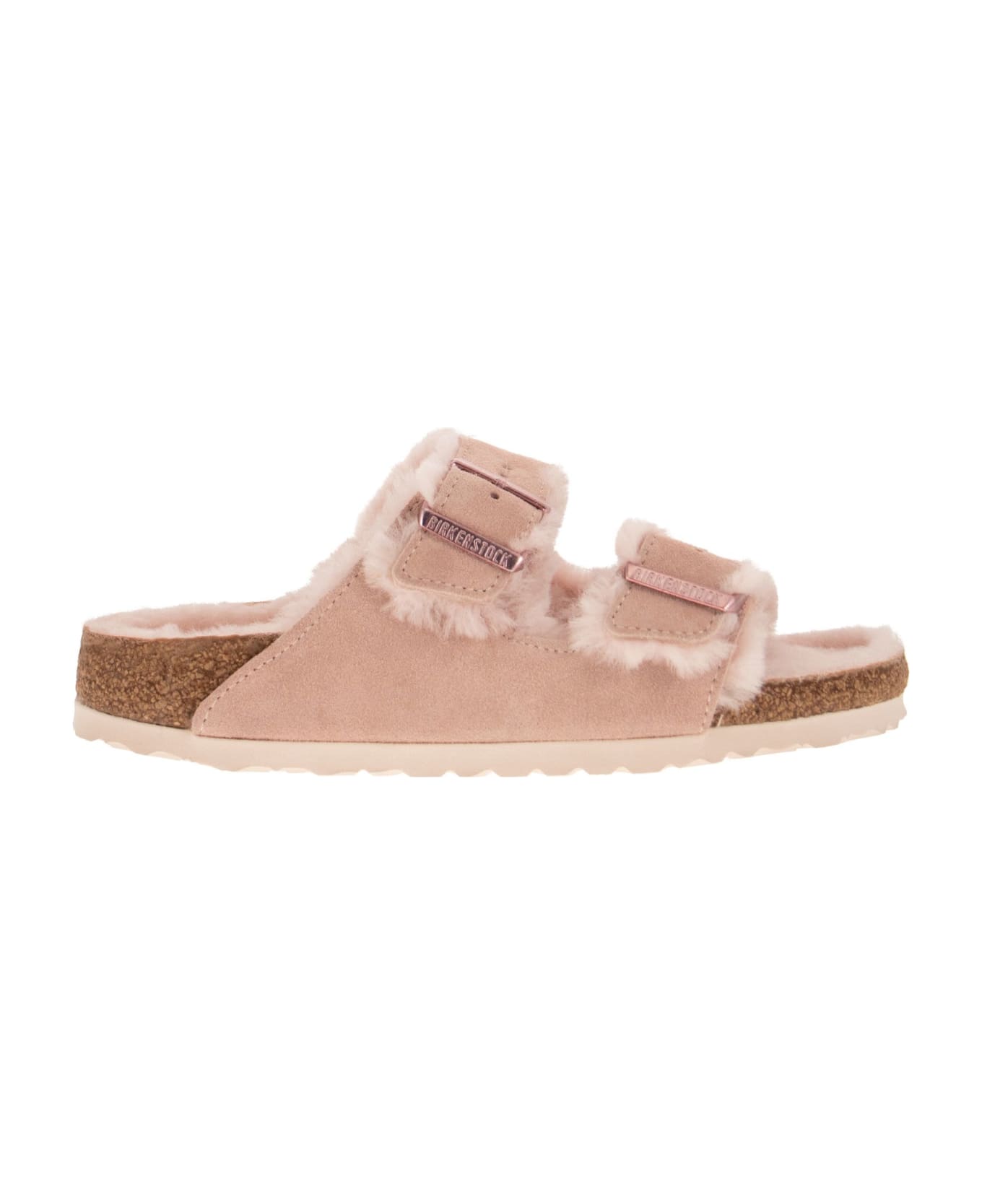 The much-loved BIRKENSTOCK Arizona classic in high-quality genuine suede is shown here in a particularly comfortable and soft version. Warm feet in style thanks to the natural lamb fur in the insole and lining of the straps. The ideal shoe for cosy winter evenings in front of the fireplace! - Anatomical cork and latex footbed - Upper: suede leather with lamb fur lining - Insole: lamb fur - Outsole: EVA - Strap with lamb fur lining DESIGNER ID: 1020389 LIGHT ROSE
