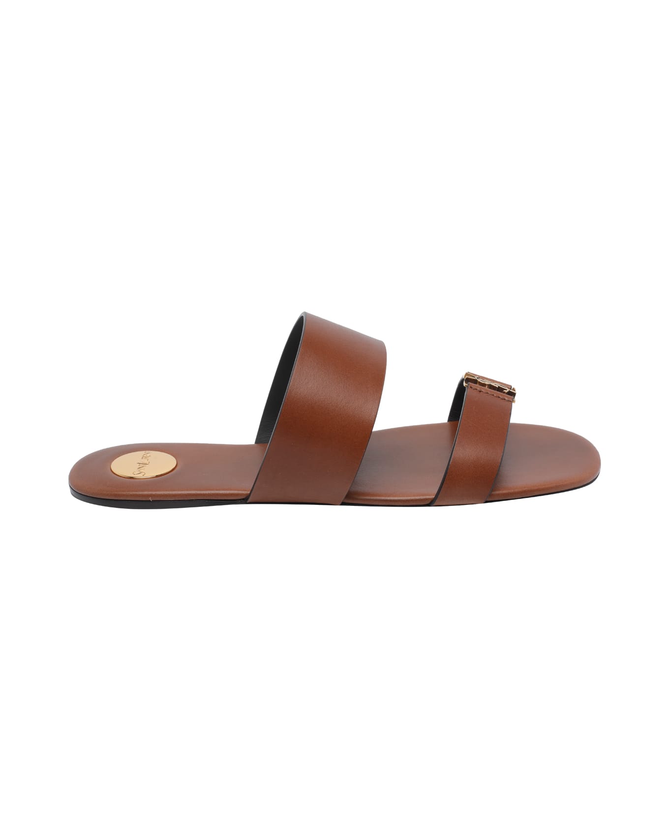 Saint Laurent brown Babylone slides, round toe, leather upper, frontal goldan logo Composition: 100% Calf Leather/leather Sole