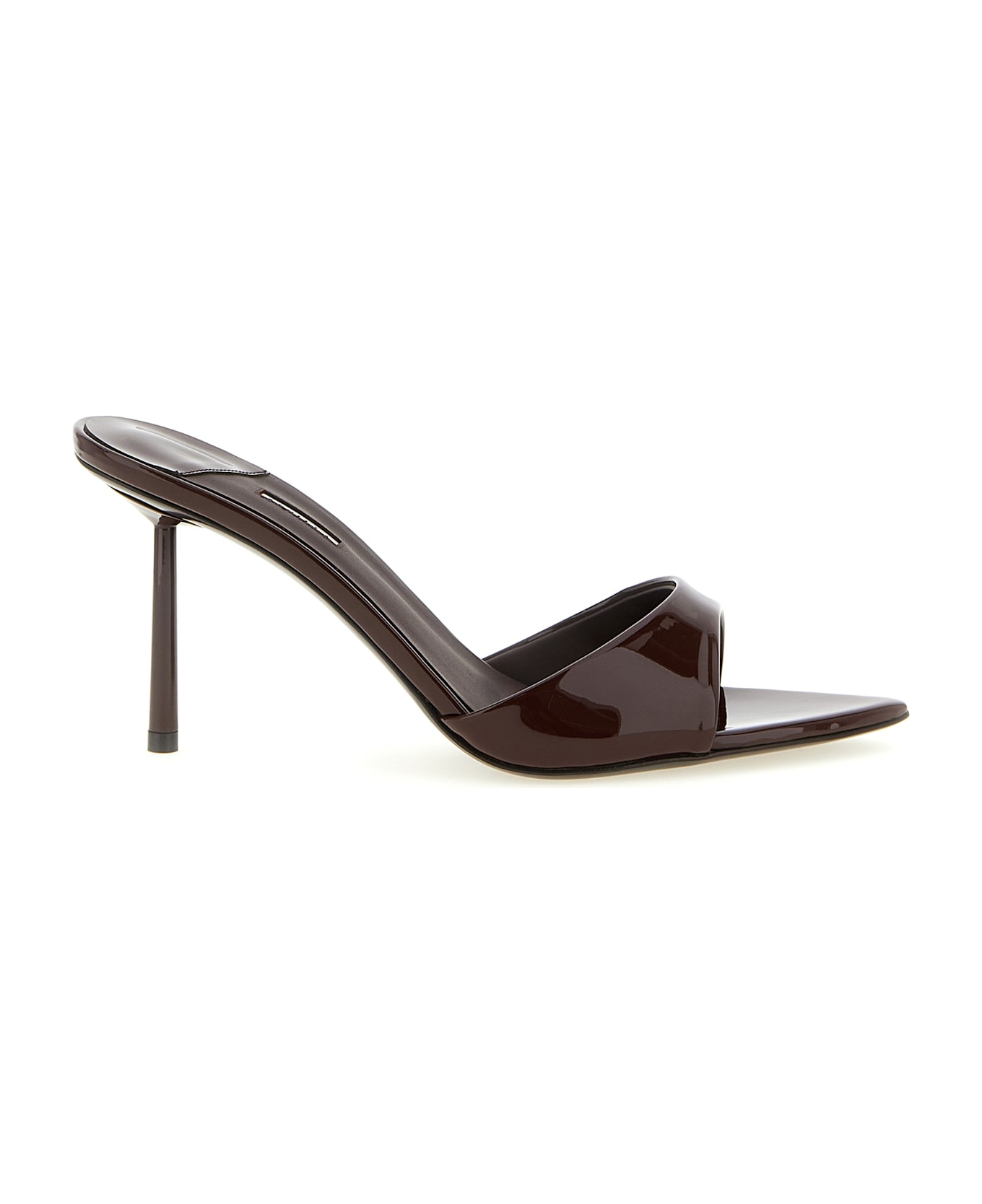'Bella' sandals in patent calf leather, pointed toe, stiletto heel, leather sole.
