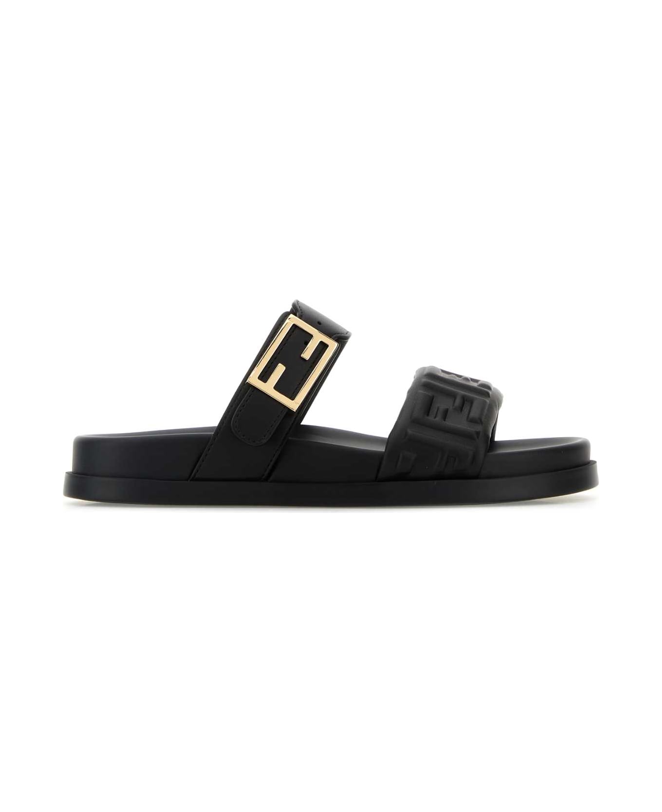 Black Nappa Leather Fendi Feel Slippers from Fendi