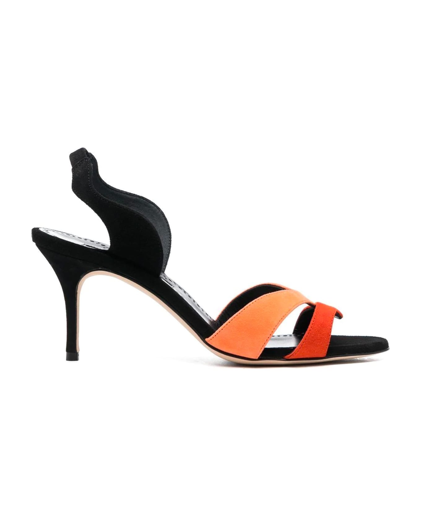 - Composition: 100% calf leather - Suede effect - Leather lining, insole, sole - Open toe - Back elastic bands - Branded insole - Heel 7 cm / 2,75 in