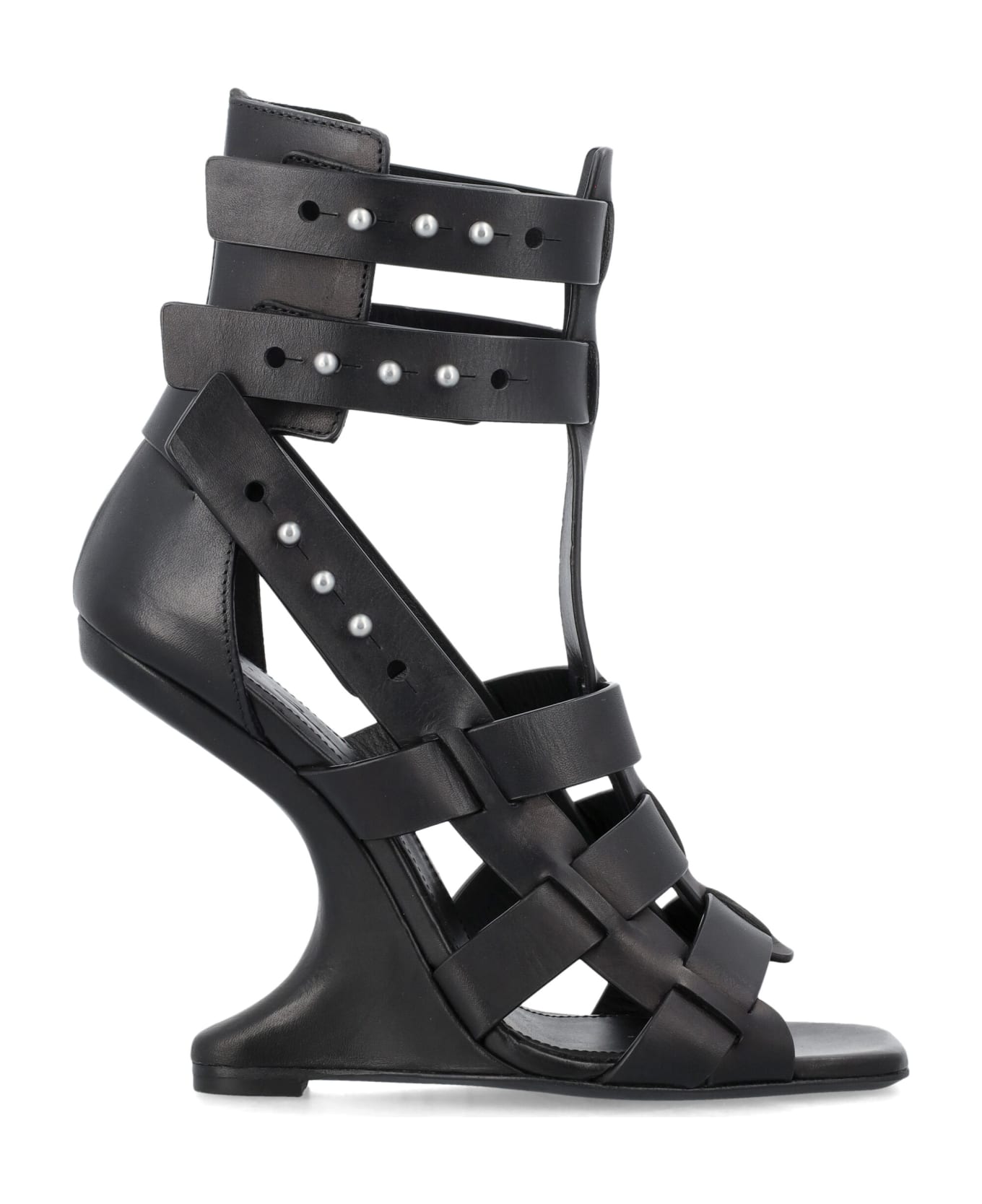 Cantilever Sandal By Rick Owens. Featuring: High Open Toe Sandal Thin Strap Across The Foot Thin Ankle Strap Squared Toe Cantilevered Curved Heel Leather And Rubber Sole Heel Height: 12cm