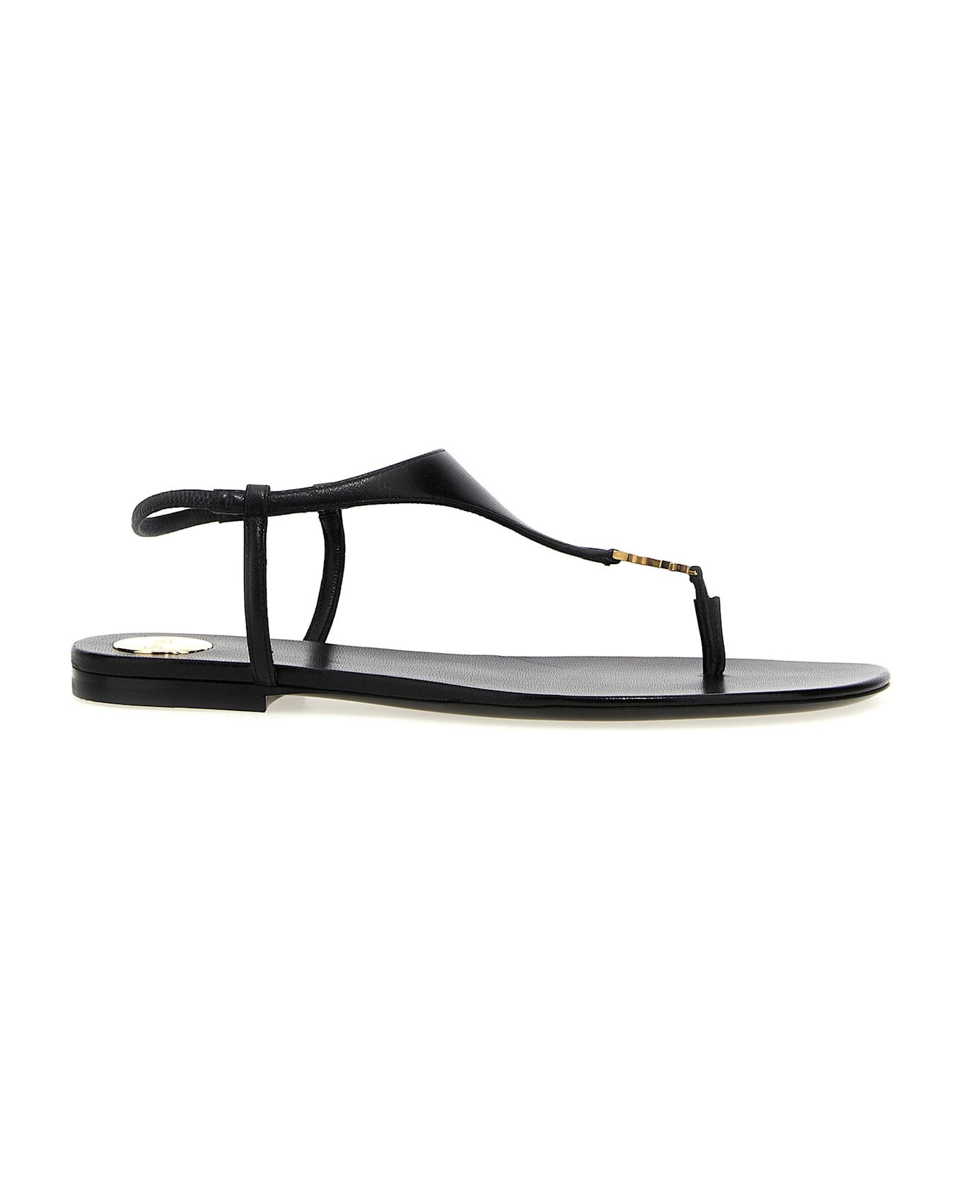Leather sandals with metal 'Cassandre' detail on the front, elastic strap, and leather sole.