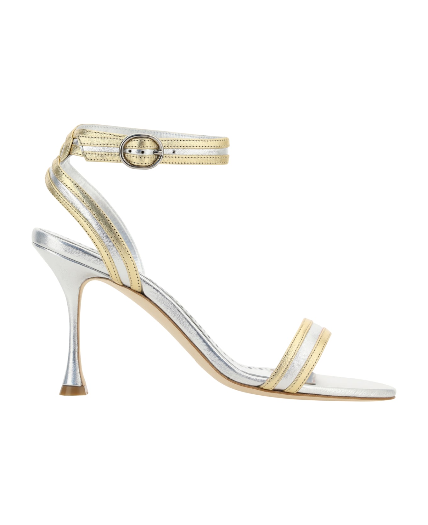 Calfskin chongasa rial sandals by manolo blahnik, almond toe, front band edged in contrast, strap with adjustable buckle around the ankle, stiletto heel leather, insole logoed pressure. Composition: 100% % Calf Leather Bos Taurus, 100% % Calf Leather Bos Taurus