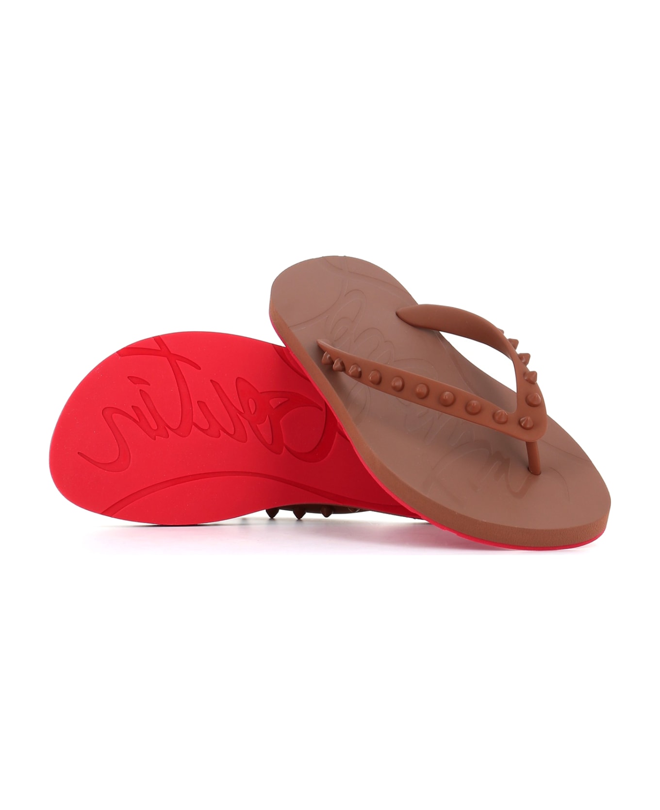 Light brown microporous rubber Flip-flop from Christian Louboutin, featuring by thin straps decorated with a row of tone-on-tone studs, a characteristic detail of the Maison Christian Louboutin. Heel: 1,5 cm