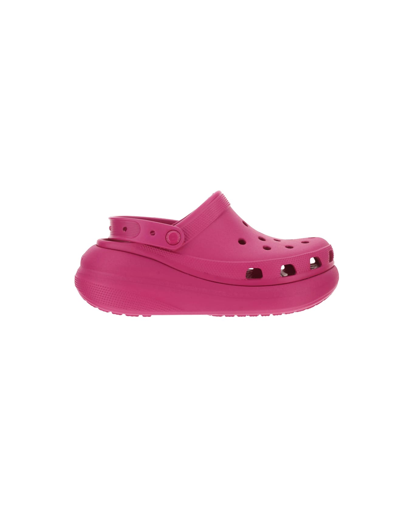 Classic crush sandal by crocs, round toe with detail on back, perforated design, brand logo on back, platform rubber sole.