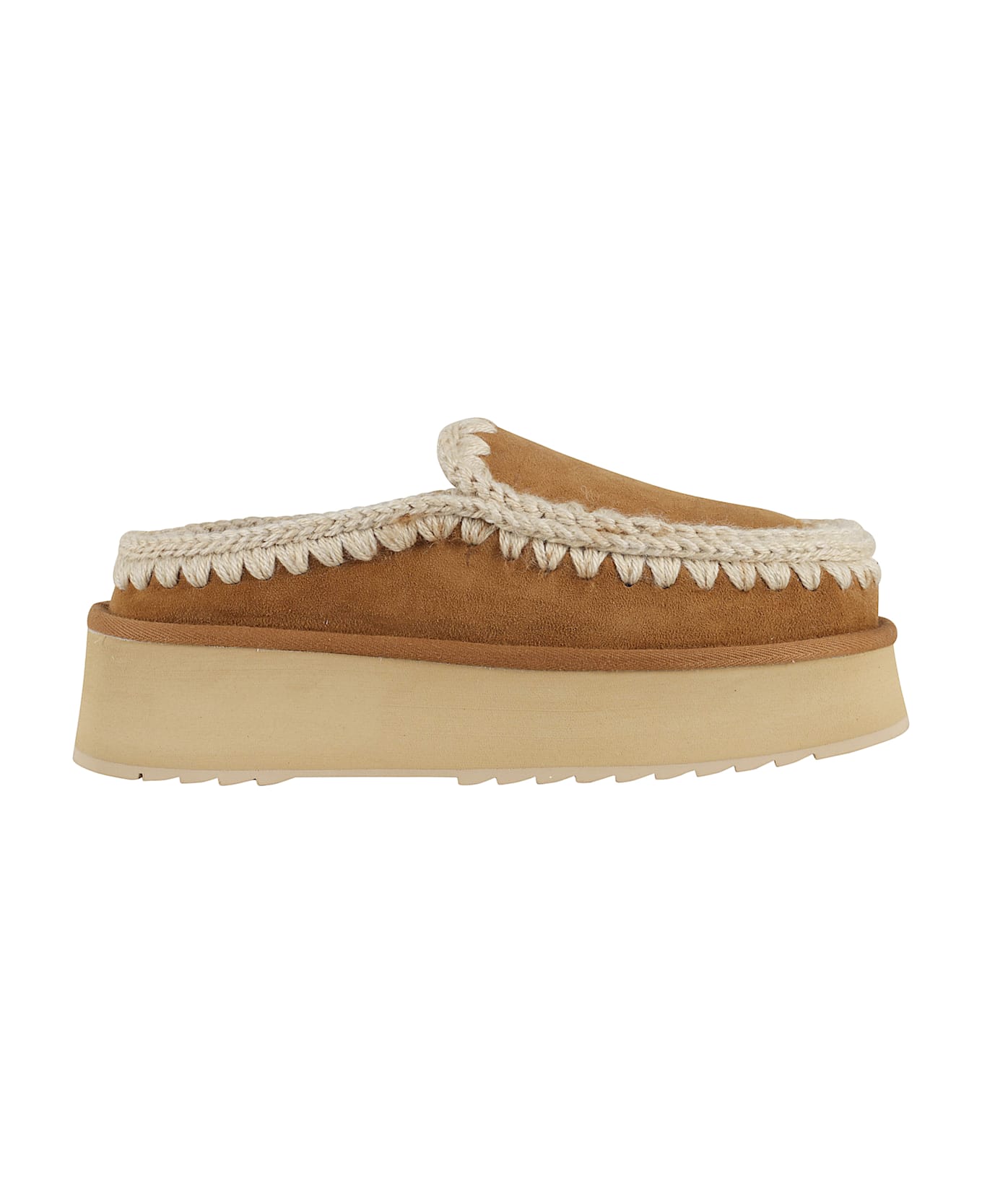 Eskimo Platform clogs - Mou - Cognac color - Suede leather upper - Fur lining - Stitched crochet detail - Slip-on model - Platform height 5 cm - Rubber sole
