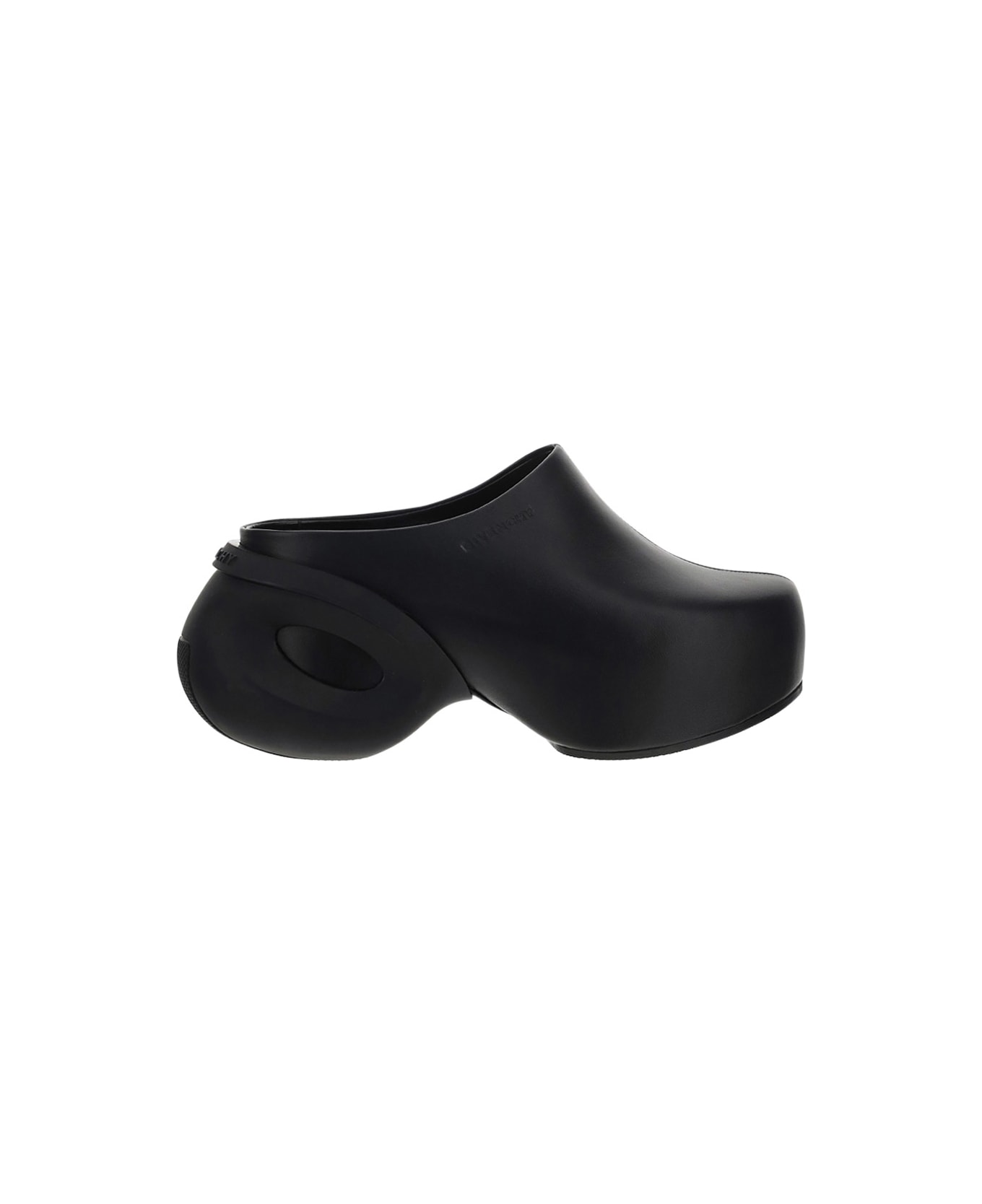Lambskin clogs by givenchy, slight elongated toe, geometric heel, slip-on style, voluminous rounded silhouette, iconic brand monogram embossed on the side, brand signature embossed on the rubber heel.