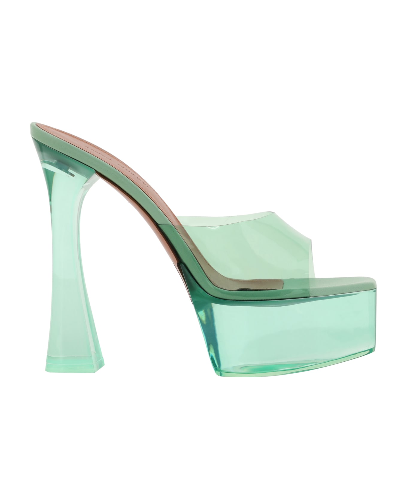 Dalida glass sandals by amina muaddi, square toe on the front, a semi-transparent geometric heel, a front strap with a transparent design, a structured platform sole, and a logo-embossed insole. Composition: 100% % Calf Leather Bos Taurus, 100% % Pvc
