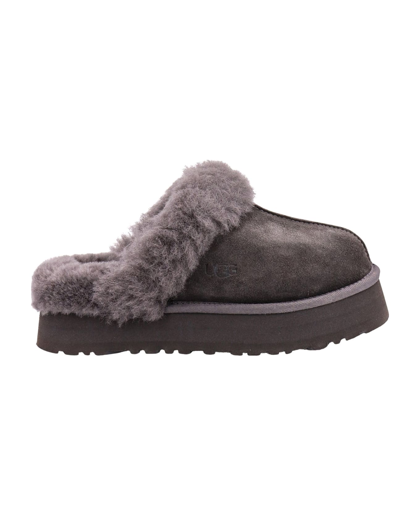 UGG diskette with suede upper, sheepskin collar, EVA sole, and 2. 5 cm platform. US size chart.
