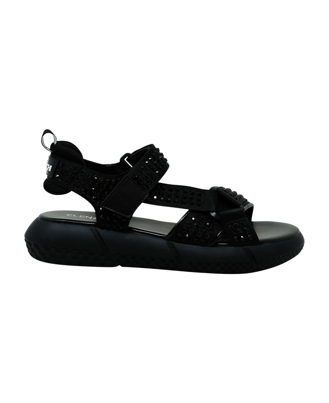 ELENA IACHI E3227 BLACK SWAROWSKY LEATHER SANDALS, product code E3227, color BLACK, material LEATHER AND SWAROWSKY, season SS23