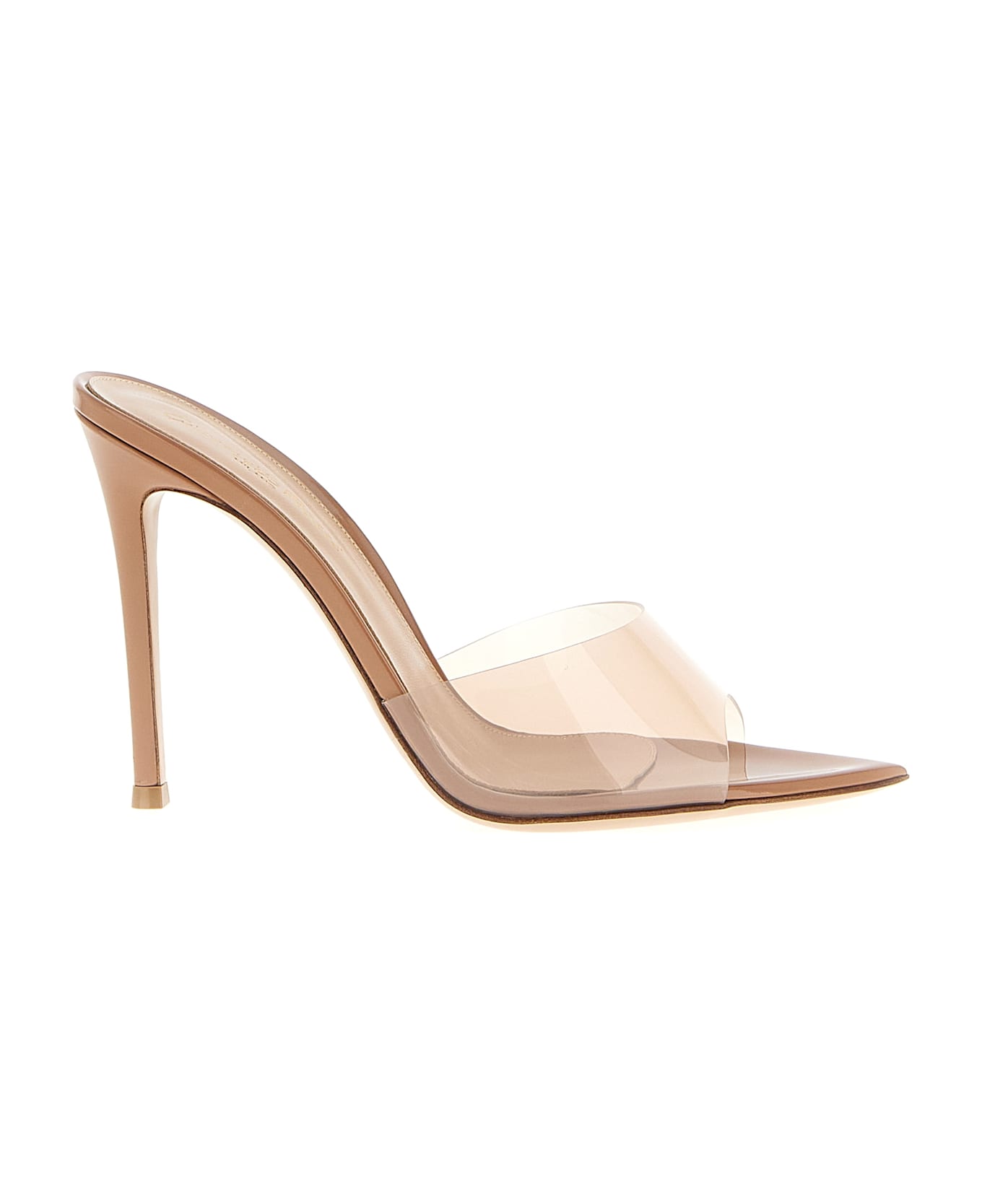 Elle' nude-effect patent leather and glass sandals with pointed toe and stiletto heels.