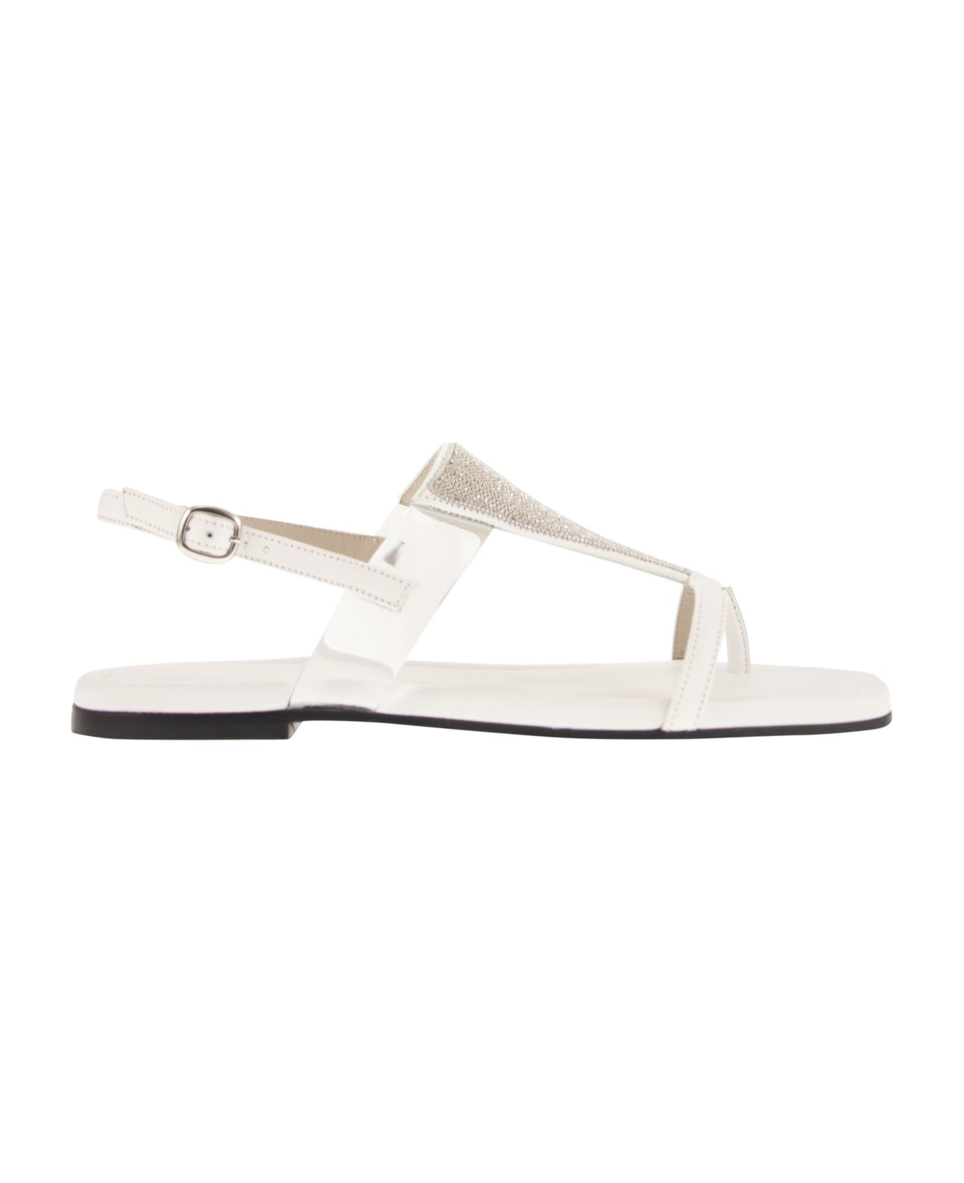An essential leather flat sandal, it stands out thanks to the bright detail forming the T. Model for completing everyday looks. - Buckle closure - Flip-flops DESIGNER ID: ASD273A947 H581 VR1 Composition: 100% Real leather