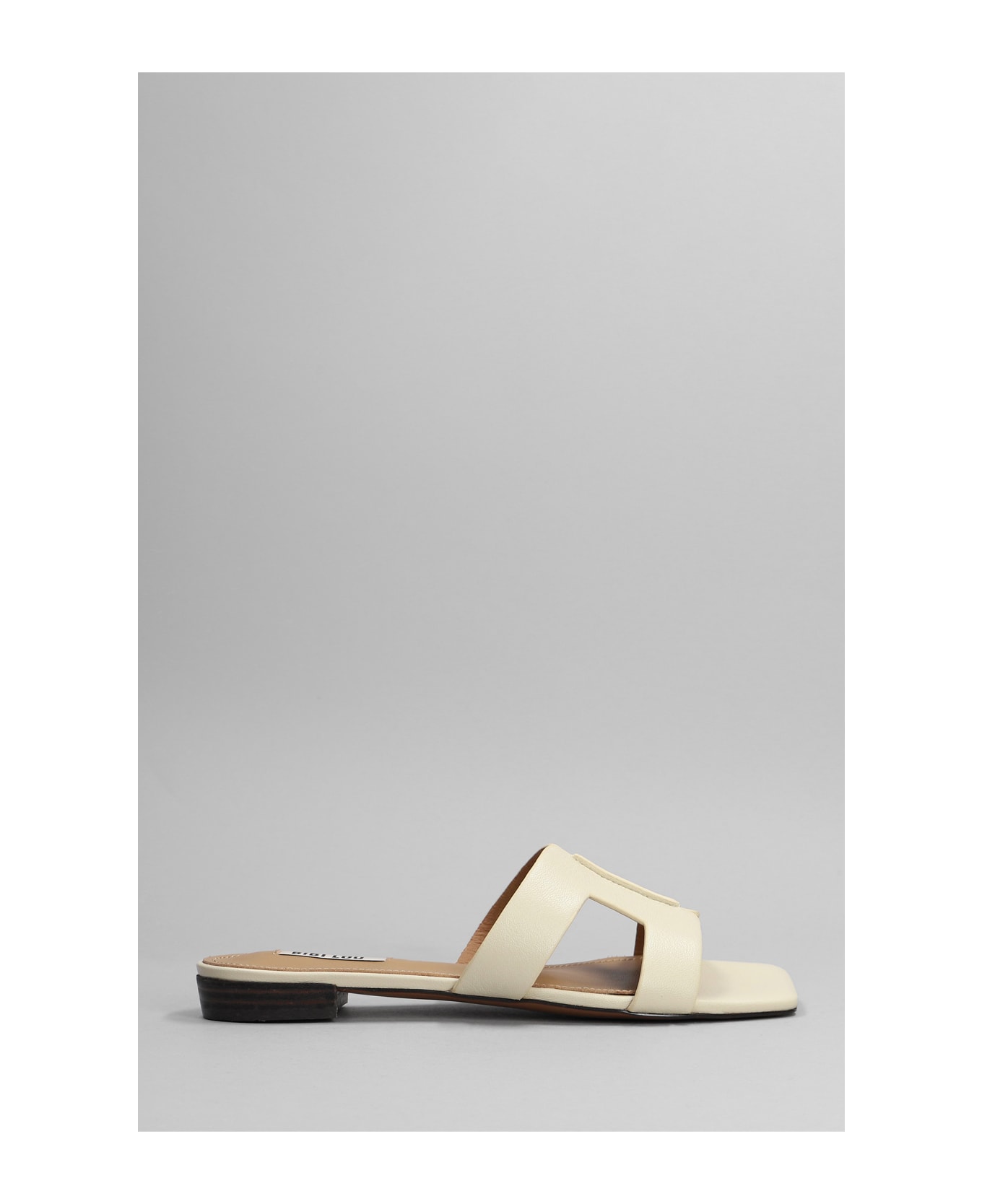 Slipper-Mule in beige leather, square open toe, cut out detail, leather sole, 100% leather, Made in Spain