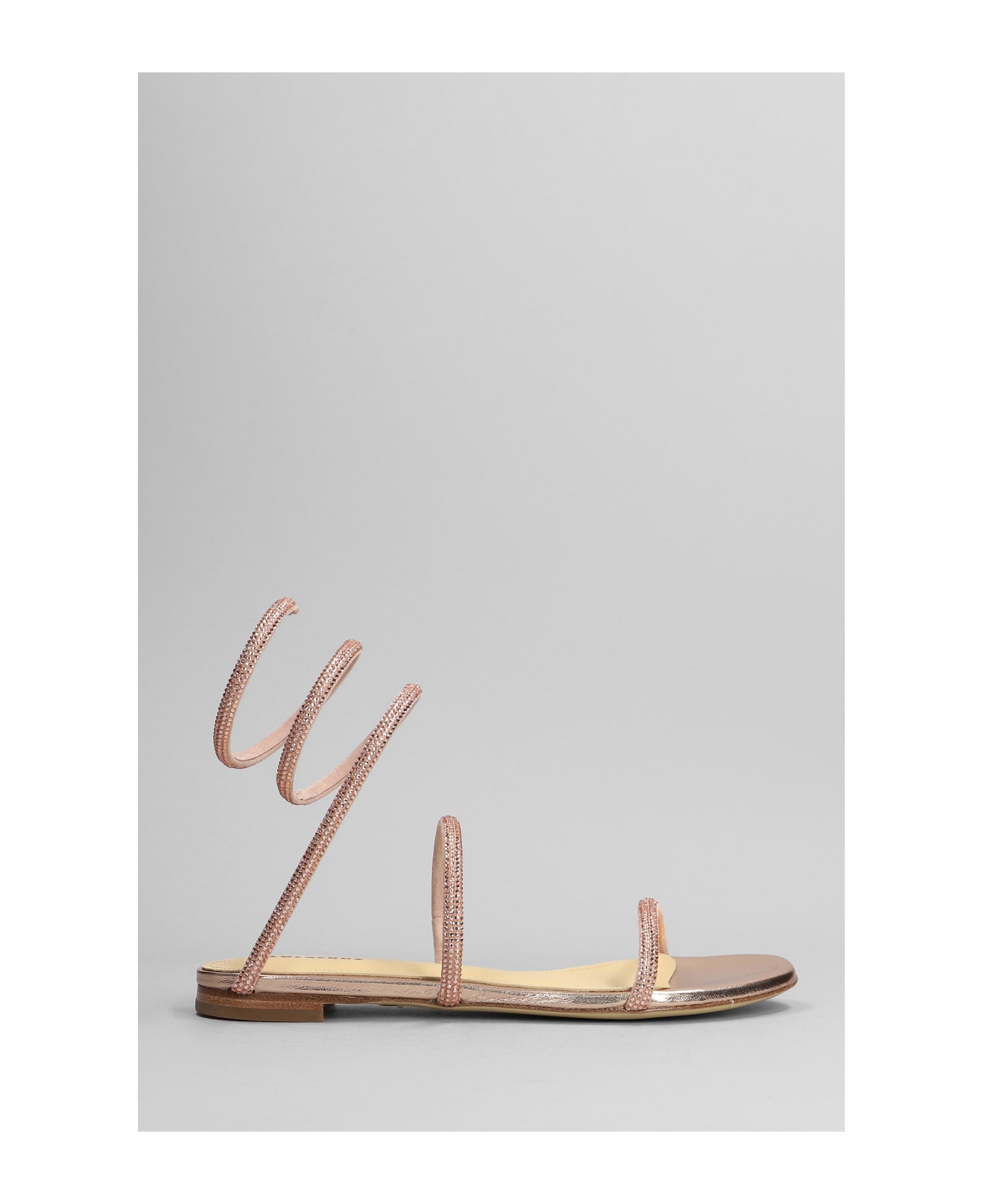 Flats in copper leather, snake strap, crystals detail, 100% leather, leather sole, Made in Spain
